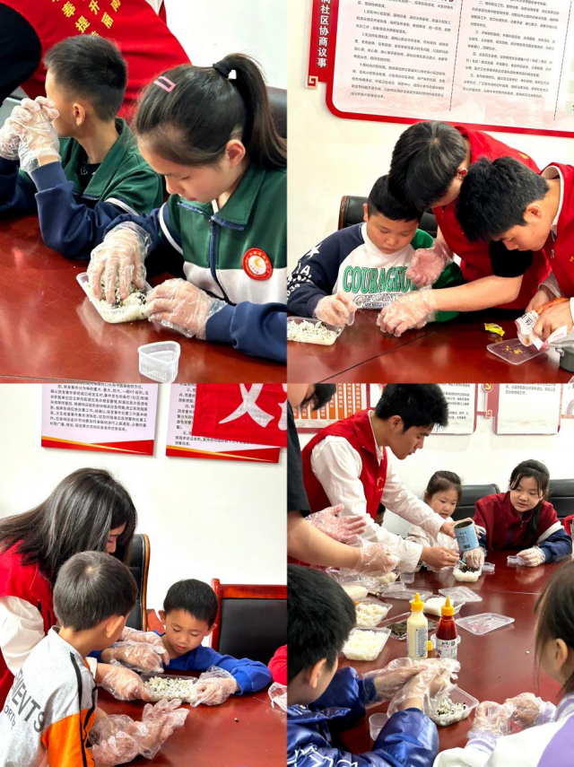 上午9点,旅游商务系“童稚”服务队前往新建文润社区开展本次公益课堂第一课——“爱粮节粮,从我做起”。公益课堂主讲人曾微同学通过猜谜语游戏的方式来引入粮食主题,紧接着运用多种关于粮食图片来帮助孩子们认识农作物,用冬小麦和水稻的成长历程,让小朋友们更加深入的了解粒粒皆辛苦的道理,鼓励青少年自觉养成勤俭节约、珍惜粮食的绿色低碳生活习惯,培养青少年爱粮、节粮的习惯。随后,志愿者还带领孩子们动手实践制作海苔饭团。课堂氛围轻松活跃,激发了小朋友们对学习节约粮食知识的兴趣,很多孩子纷纷打包了自己制作的海苔饭团,表示要带回去给自己的爸妈也尝一尝。