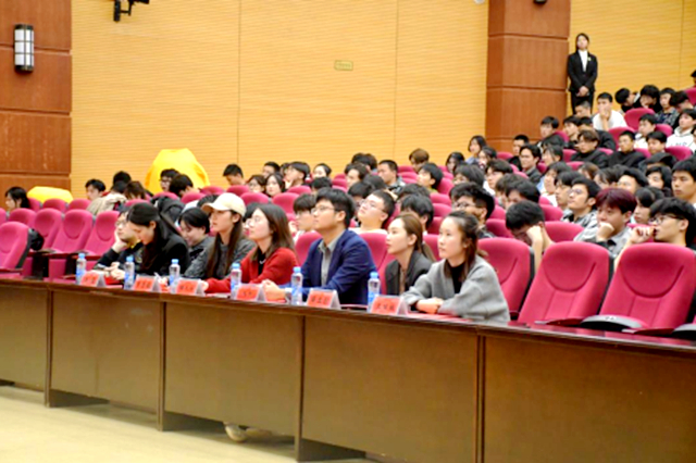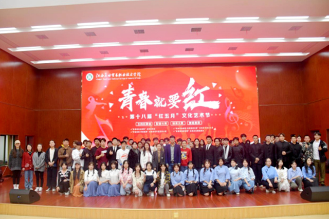 为深入学习贯彻党的二十大精神,在校园里掀起一场学习红色知识、重温红色历史、发扬红色精神的浪潮,用声音传承经典,激发学生对语言学习的热情与兴趣,展现青年学子积极向上的精神风貌。4月27日晚,由学院团委主办的第十八届“红五月”文化艺术节——“声临其境传承经典”红色影视作品主题配音比赛在学术报告厅成功举办。校友办田玉阶老师,团委邹凡宇老师、王媛媛老师、罗慧敏老师以及院主持基地指导老师南昌大学播音主持系研究生王滢受邀担任评委,来自学院各系部师生代表近500余人观看比赛。