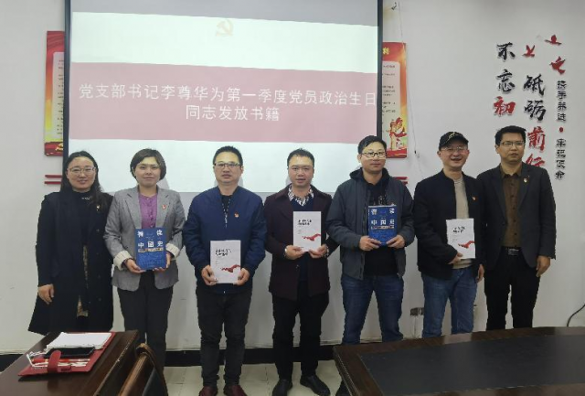 会议最后,李尊华代表支部向第一季度过政治生日的5位党员赠送书籍,同时勉励党员同志要发挥党员先锋模范作用,时刻牢记党的宗旨和使命,切实增强党员的荣誉感、责任感、使命感,在今后的工作中不断创先争优,为新时代教育事业发展贡献自己的力量。