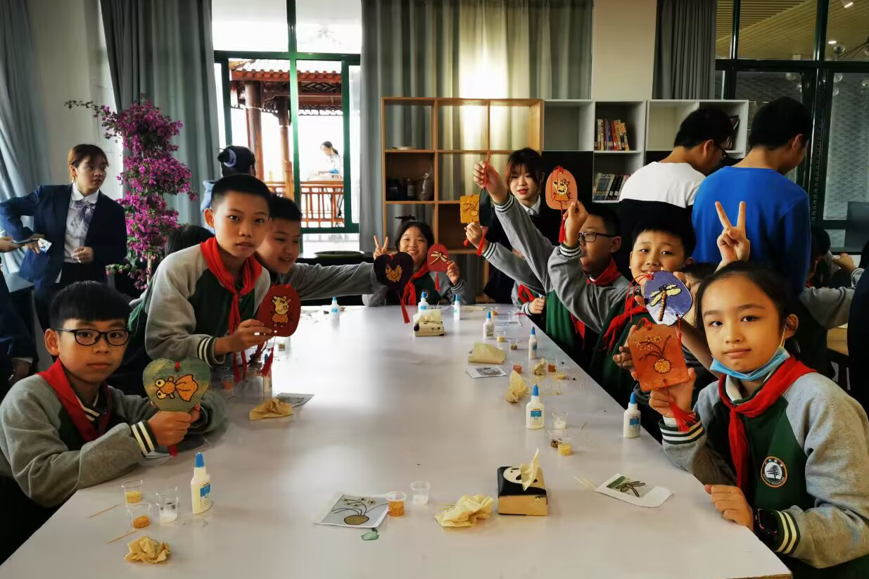 中小学生研学旅行是全面落实立德树人根本任务、综合推动实践育人的重要途径,旨在帮助中小学生了解国情、热爱祖国、开阔眼界、增长知识,着力提高他们的社会责任感、创新精神和实践能力。近年来,学院提前布局,系统谋划五粮文化育人工作“一盘棋”,对标江西省《中小学研学旅行》标准,充分发挥学院优势和特色,坚持以五粮文化厚植青少年家国情怀为抓手,构建特色文化育人体系,积极推进大中小学思想政治教育一体化建设探索实践,引领青少年学生强化道德实践养成;同时,多措并举推进面向全省青少年的“游学工贸”研学实践教育基地建设。一是因地制宜拓宽研学活动阵地。在充分利用好“工贸十景”“粮食文化主题公园”等育人资源基础上,重点提升打造粮园项目,完善研学活动设施设备,不断拓宽研学活动新空间。主题公园占地约36亩,粮园约有1600平方米,集展示、科普、研创于一体。学院获批第45届、46届世界技能大赛糖艺/西点项目的中国集训基地等。二是深挖文化内涵打造特色研学产品。通过深挖五粮文化,实现各项主题研学活动推陈出新,包括“寻访红色初心·探寻全国样板党支部”“缅怀伟人·游粮食名人园”“青春立志·五粮文化浸润心灵”“米穀少年重温江西米制技艺”“以粮为墨,书画未来”等研学产品。三是注重环节设计打造沉浸式实践课堂。围绕“游中有学,研中有思”的理念,聚焦粮食安全宣传教育主题,根据学生的年龄特征、学段要求等特点,打造体验式实践课堂,推进建设《粘米成画小能手》《指尖上的画米穀》等特色课程。四是加强保障提升研学服务品质。除了粮油食品类等优势特色专业外,学院获批有全国职业院校旅游类示范专业点,还有学前教育等教育类专业,拥有一批优秀的专业辅导、接待讲解人员和研学课程指导教师。三年来,学院多次承接南昌市中小学生专题研学实践活动,深受师生好评,为推进中小学生研学实践教育基地建设积累了经验。