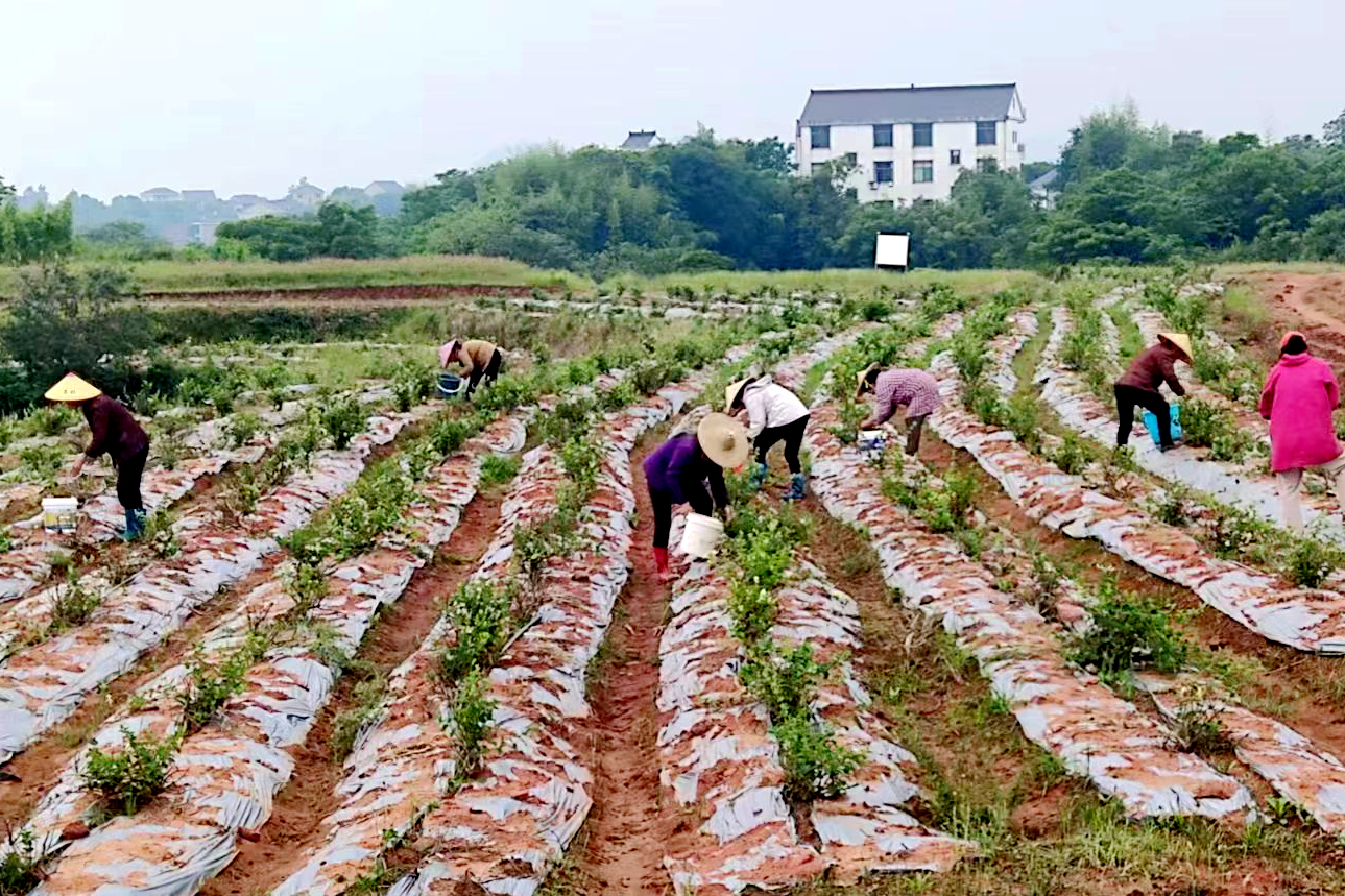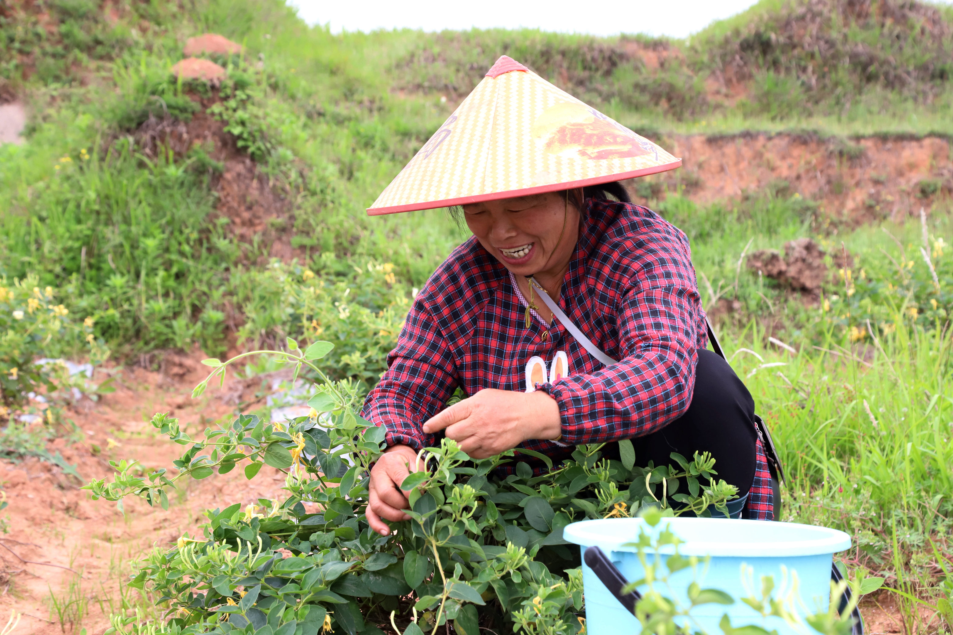 新塘村驻村第一书记谢荣华介绍说:村两委长期以来始终坚持产业发展与生态保护相结合,践行“绿水青山就是金山银山”的发展理念。金银花产业既是保护生态的生动实践,也是增加村集体经济、激发了脱贫户内生动力的致富路径。产业基地不仅带动了10户脱贫户在家门口就业,同时还可以为90户脱贫户带来产业分红,使帮扶产业真正成为村民致富产业。新塘村采购的金银花苗一年可采摘3季,第一季花苞及花朵采摘完以后,将继续吸收脱贫户到基地施肥、除草以增加收入。