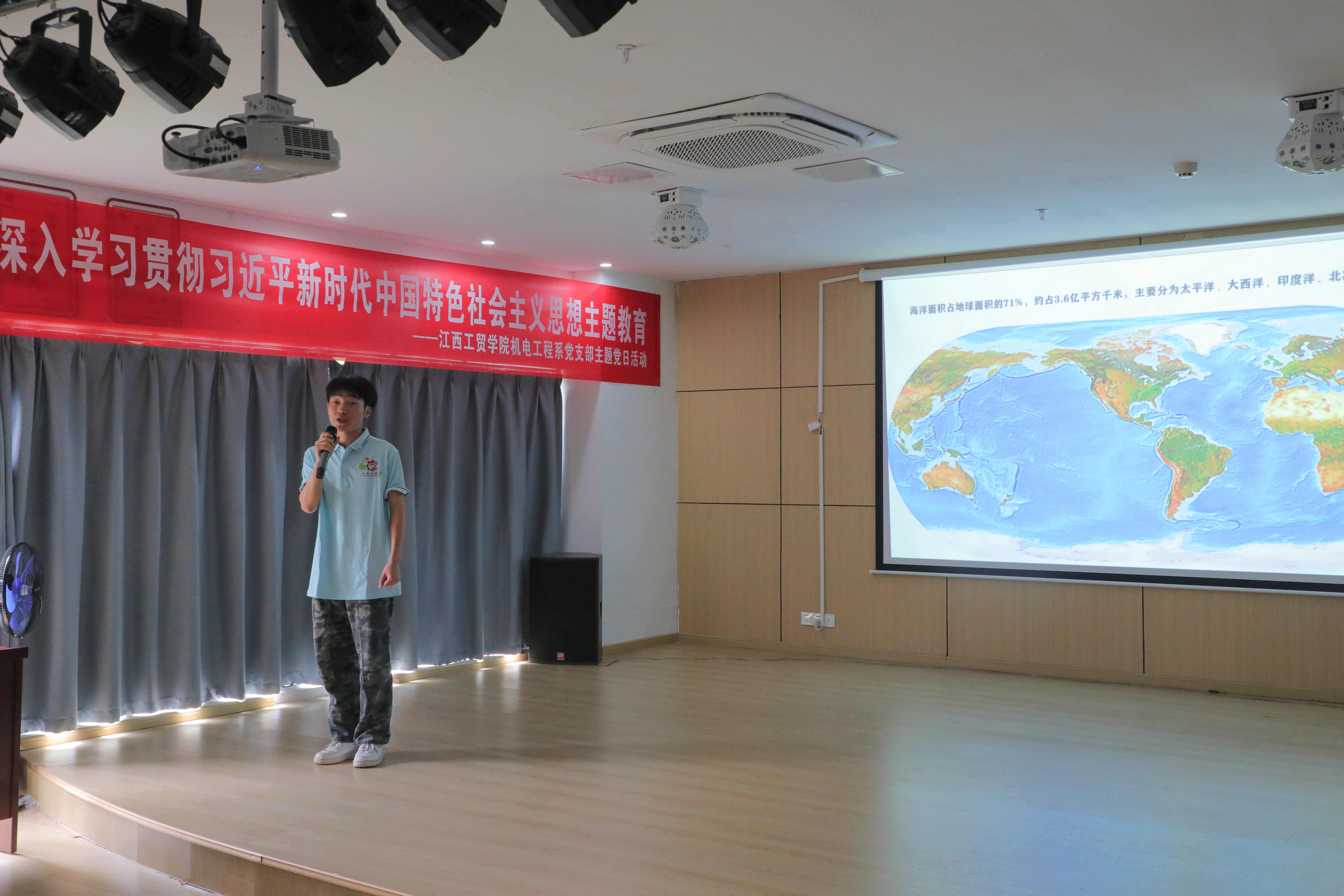 学院基层党校第65期学员、机电工程系学子罗宁科普海洋资源保护知识,呼吁在场的少年儿童们在成长的过程中重视自然环境的保护,构建人类命运共同体的和谐共生环境。