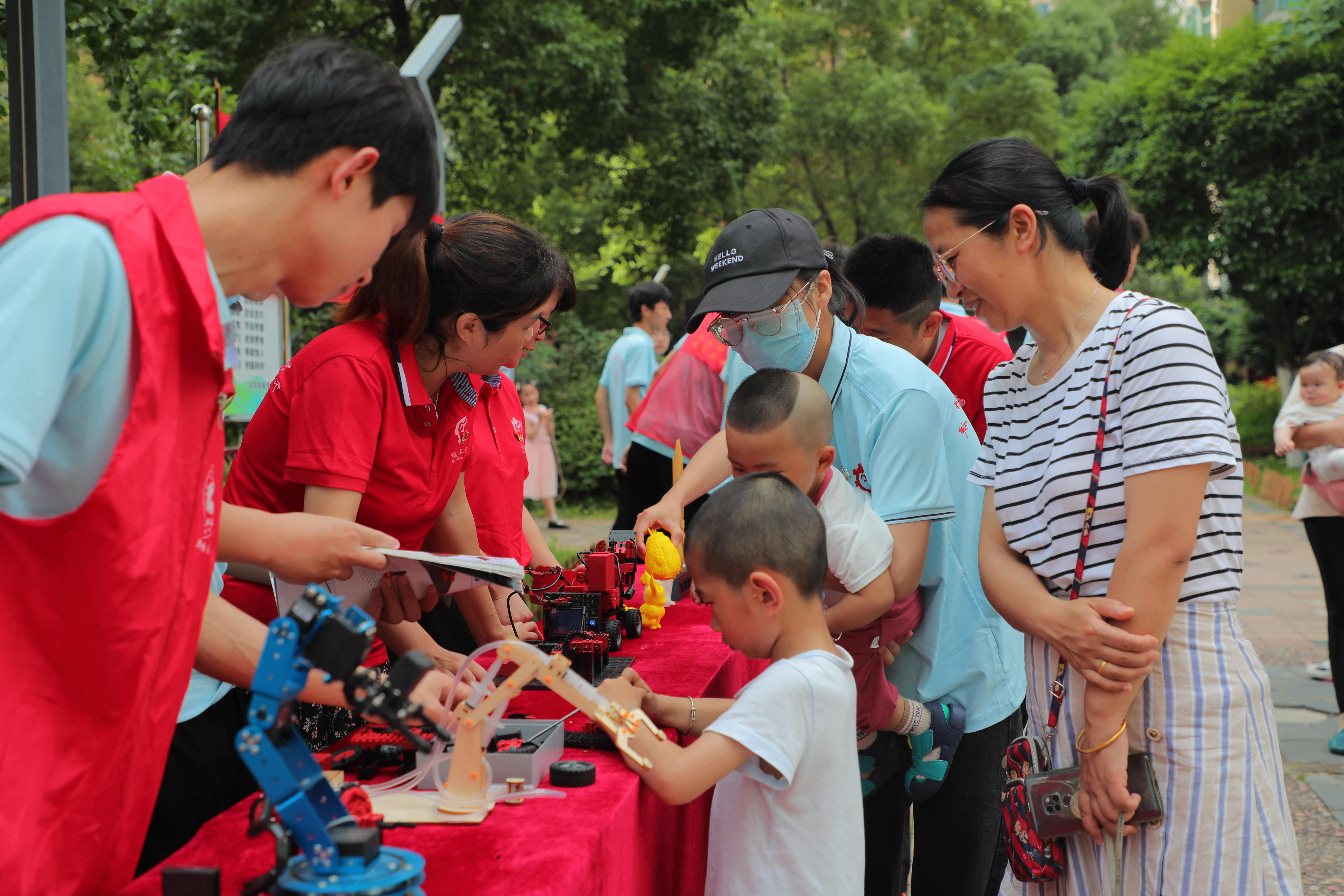 技术技能作品展示了机电工程系师生智能制造较前沿领域的创新能力,拓宽了社区居民“制造强国”的新视野。充满科技含量的搬运机器人、慧鱼创新作品引得社区儿童爱不释手。