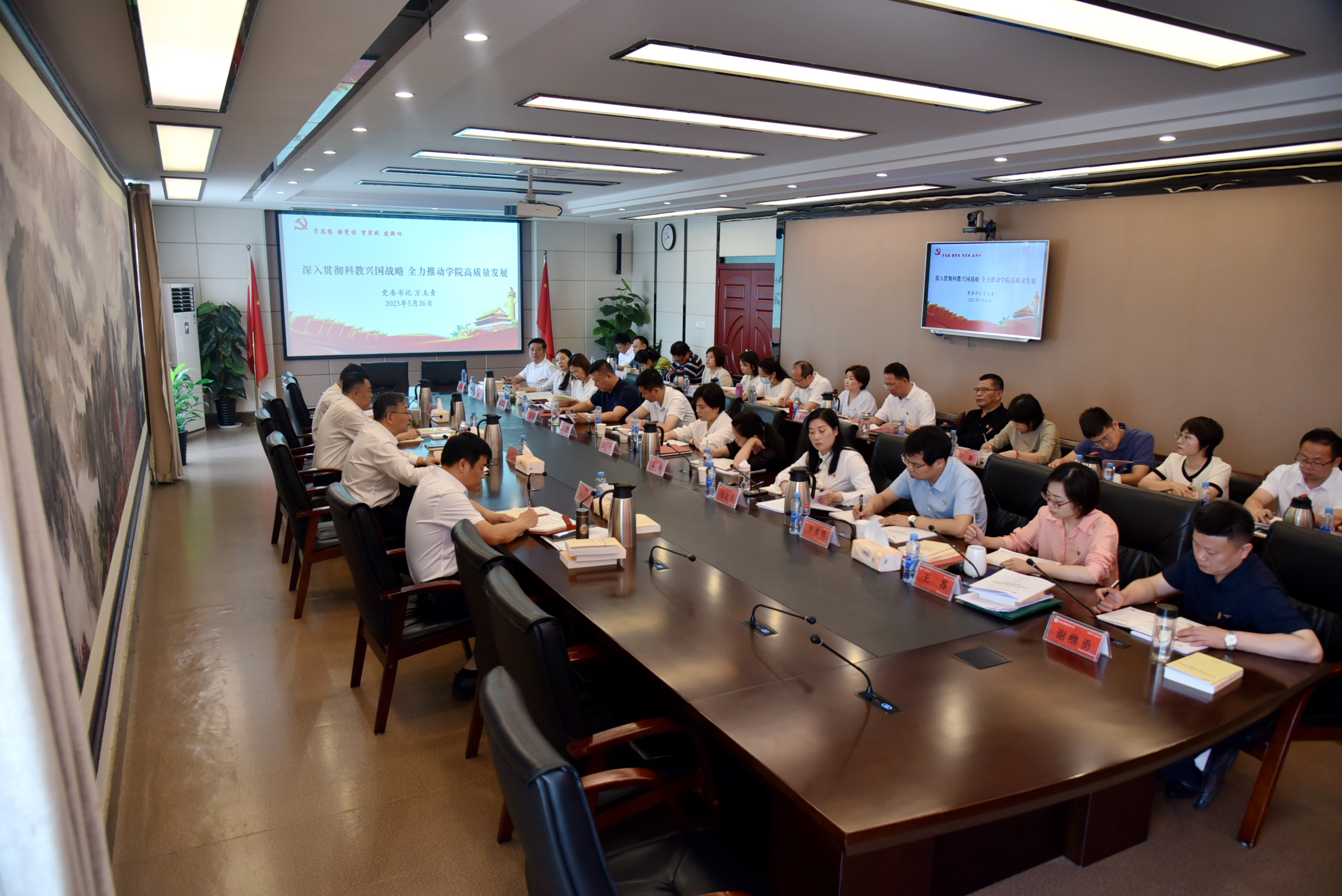 万玉青作了题为《深入贯彻科教兴国战略全力推动学院高质量发展》的辅导报告。他指出,在推动教育事业高质量发展的大格局中,党的二十大报告特别强调“推进职普融通、产教融合、科教融汇,优化职业教育类型定位”,进一步明确了新时代新征程上职业教育发展的总基调。