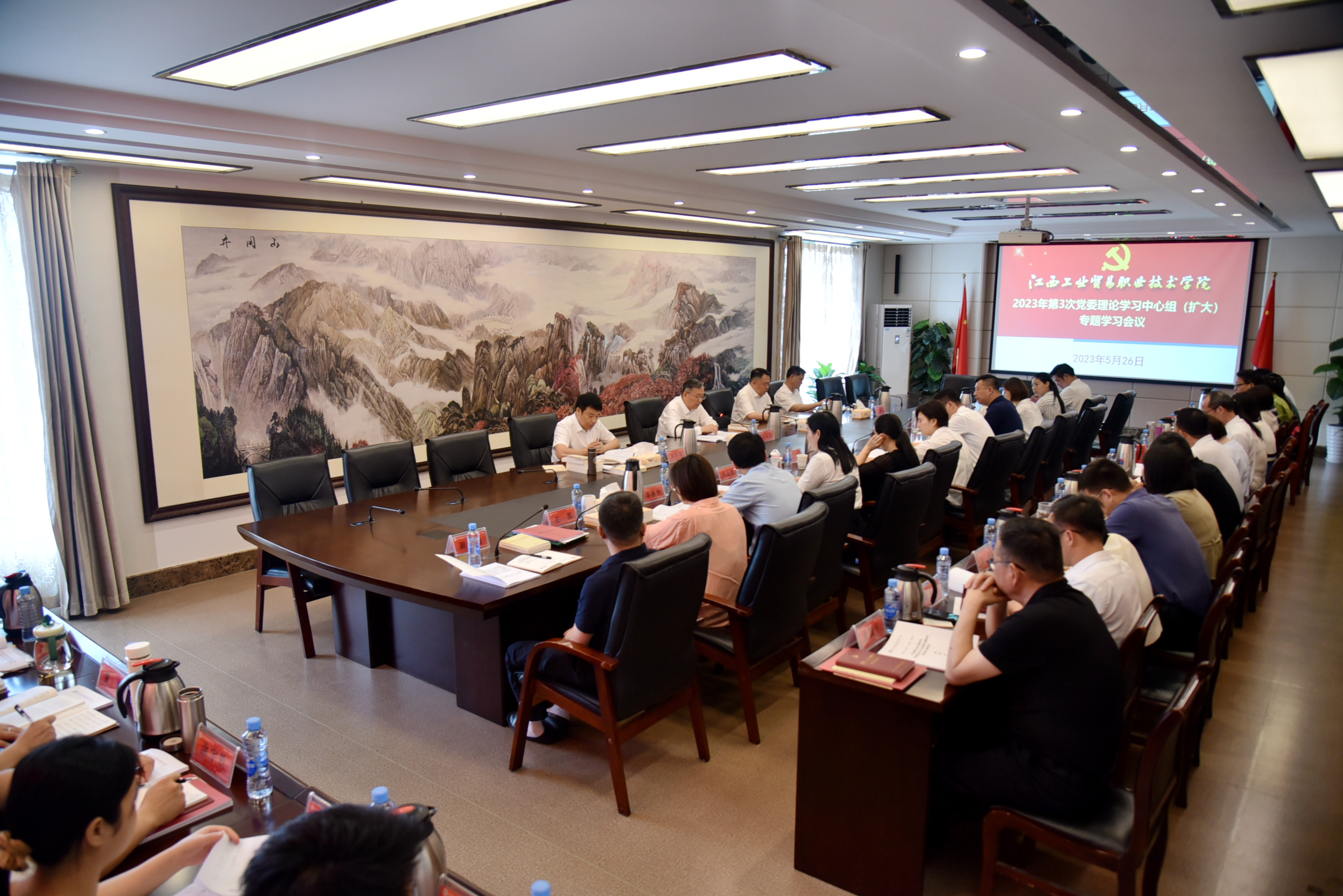 根据学院主题教育专题读书班工作安排,5月26日上午,学院召开2023年第3次党委理论学习中心组(扩大)专题学习会,学院在家党委班子成员和全体中层干部参加会议。学院党委书记万玉青主持会议并讲专题党课。