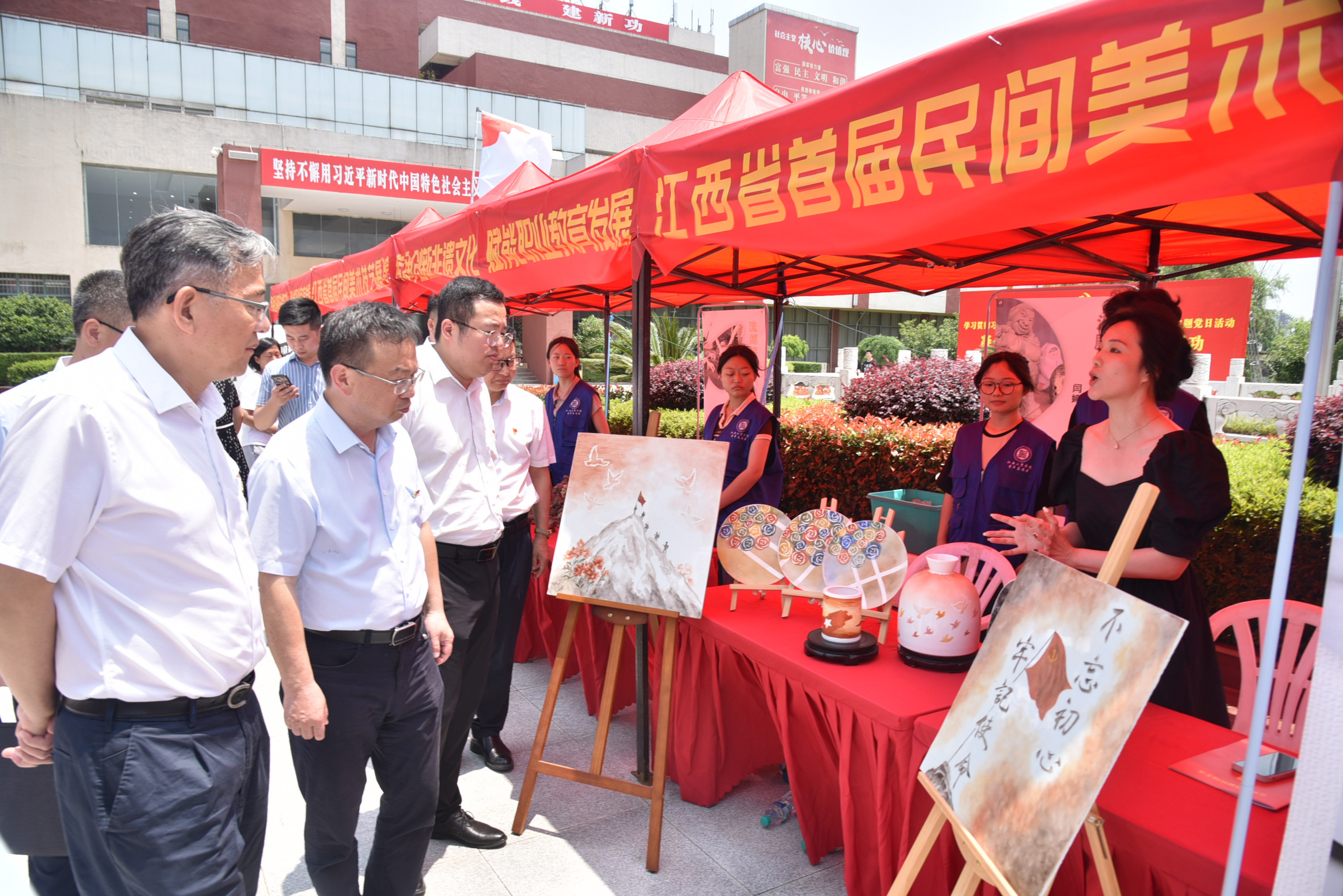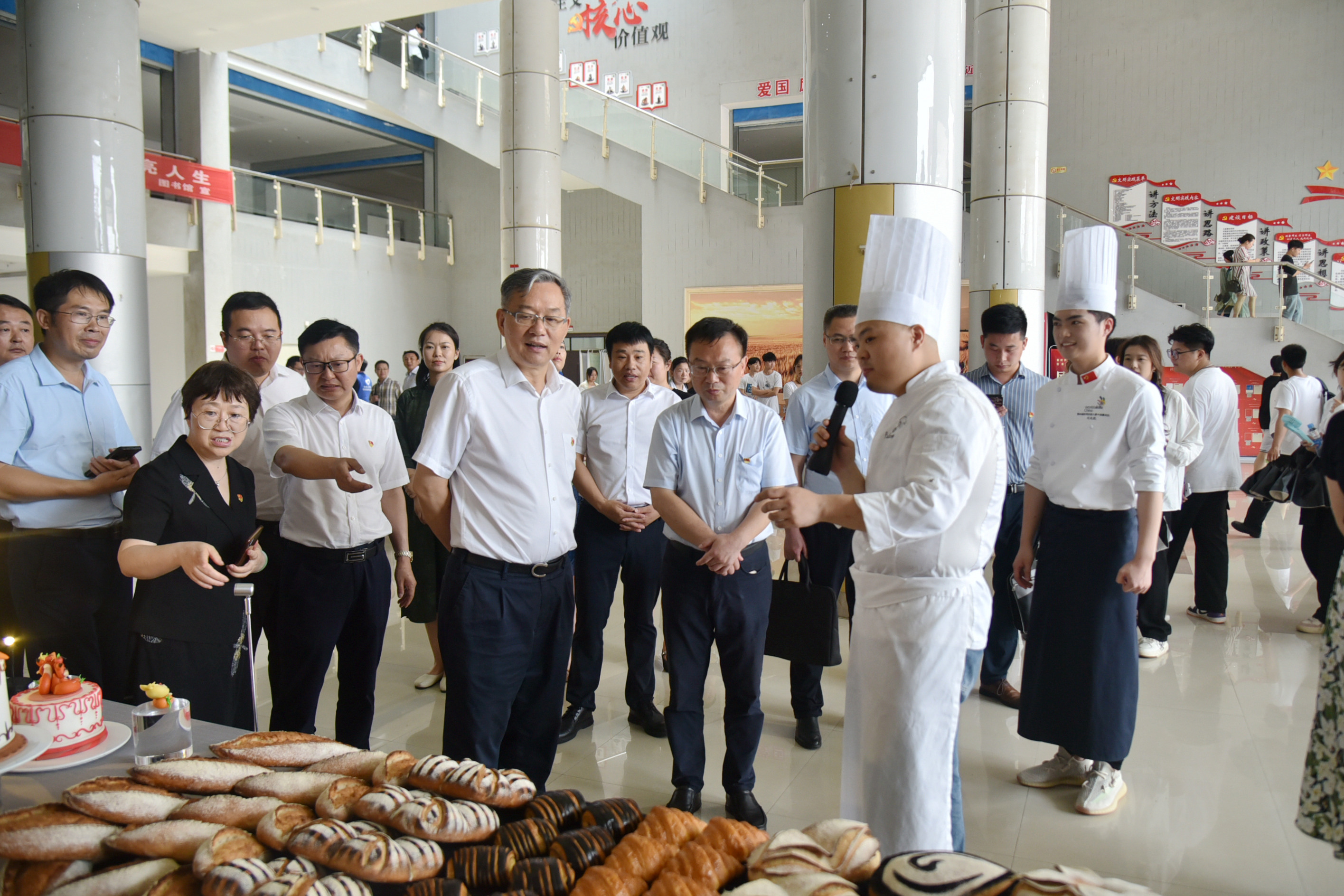 主题教育演讲大赛结束后,合作院校领导、嘉宾在江西工业贸易职业技术学院党委书记万玉青,党委副书记、院长万晓波的陪同下参观了学院粮食文化创业产业园、糖艺西点、花艺等技能展示和江西省首届民间美术技艺展演。