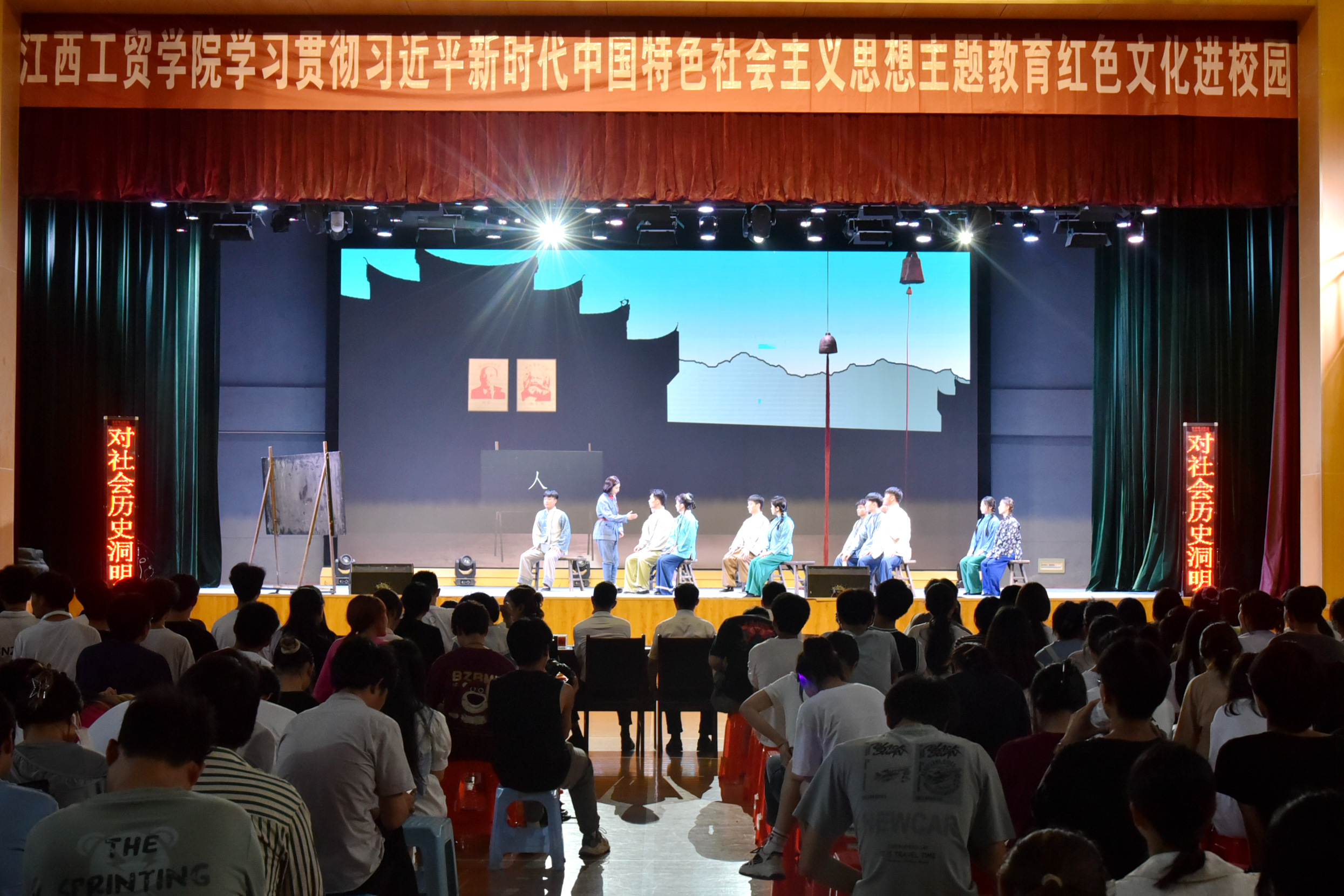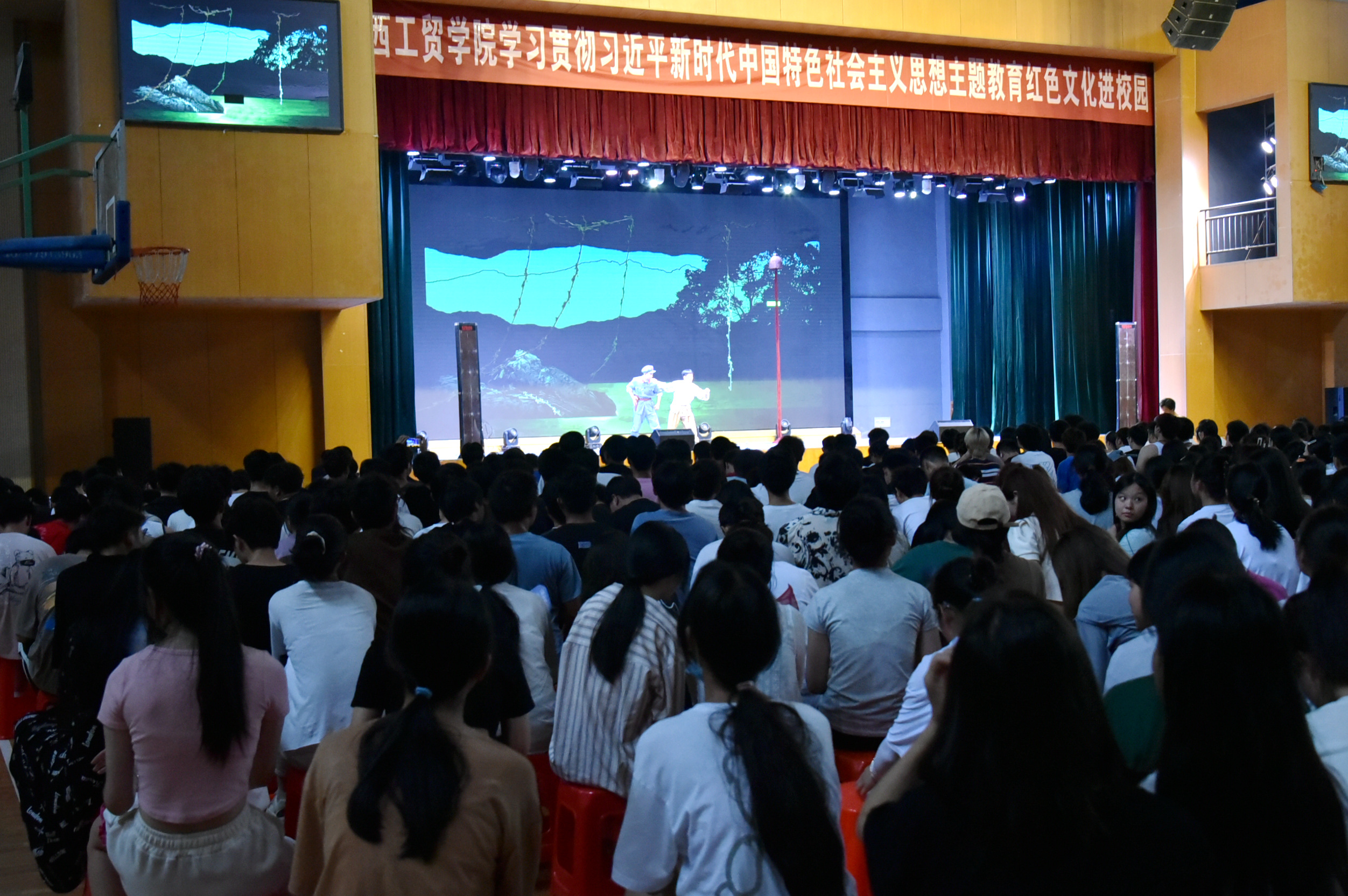 为深入学习贯彻习近平新时代中国特色社会主义思想,牢牢把握主题教育“学思想、强党性、重实践、建新功”的总要求,5月30日下午,江西省赣剧院到校开展革命历史剧《血火熔炉》专场演出。学院党委副书记彭锐出席并观看,团委负责人、各系分管学生工作主任、副主任、团总支书记近1500名师生到场观看。