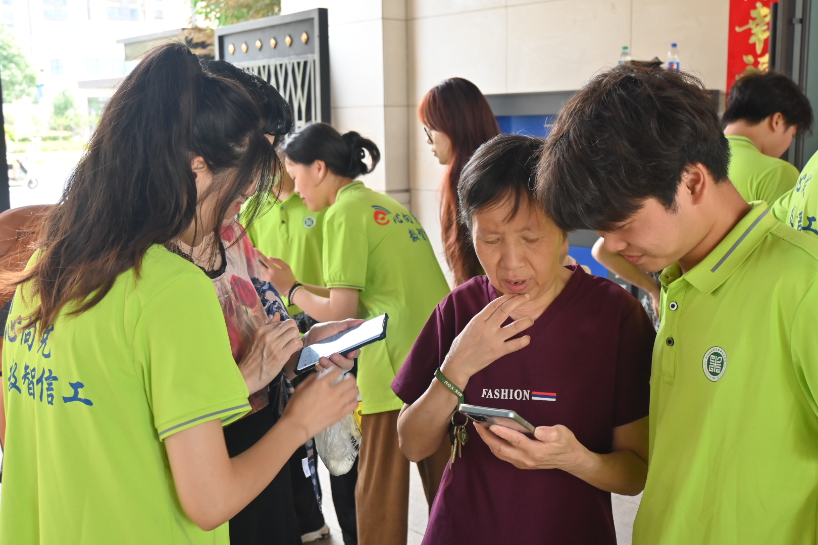 教学结束后,面对居民们的提问,师生们都会耐心细致地讲解,对于“零基础”的老人们,则进行“一对一,手把手”的指导,直到老人完全掌握操作步骤。
