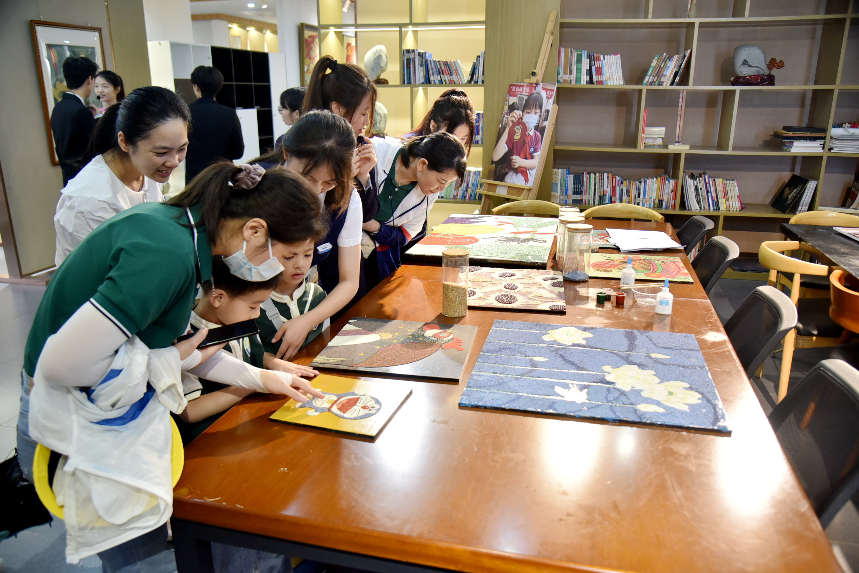 学院旅游商务系教师带领学前教育专业学生志愿者为小朋友们生动讲述了粮源悠长、粮人仙踪和金丰凌云等粮食文化景观,带领小朋友们参观西点烘焙实训中心糖艺、糕点展览作品,品尝西餐烘培专业师生精心制作的果汁和小熊饼干。粮食文化中心教师和学生志愿者带领小朋友们参观粮食画、画米穀项目展厅作品,并为小朋友们细致地讲解粮食画的制作。师生们游览粮食文化园、参观粮食文化创意产业园,识五谷、制作粮食画,观摩西点烘培制作工艺,小朋友们在惊叹五谷粮食画、糖艺糕点等作品精巧美丽的同时,也纷纷表示自己是爱学习爱劳动的小朋友、劳动的小朋友最美丽。