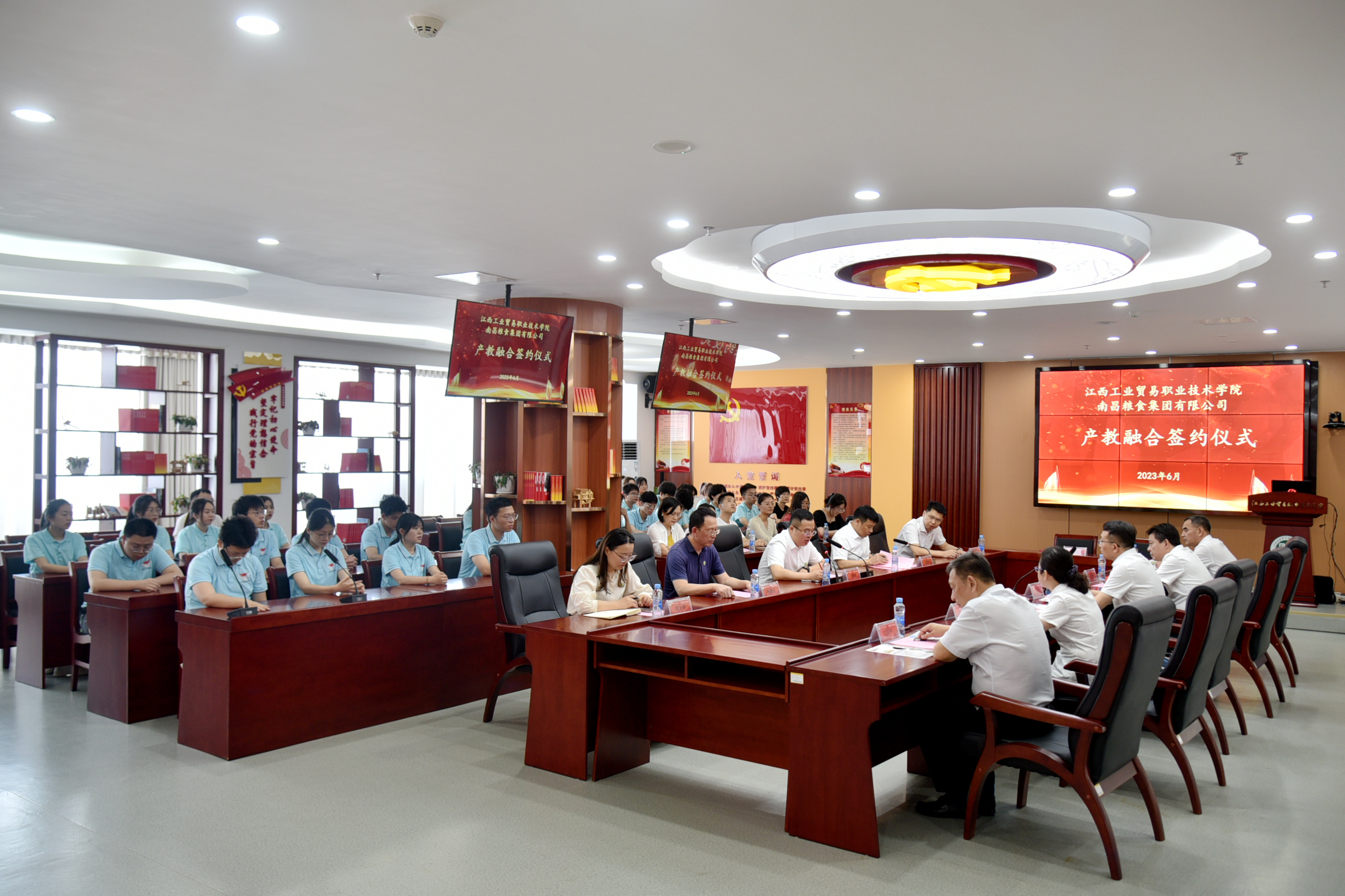 为扎实推进主题教育走深走实,深化产教融合,助力学院高质量发展。6月12日,江西工业贸易职业技术学院与南昌粮食集团有限公司产教融合签约仪式在学院仓廪实党员活动室举行。学院党委副书记、院长万晓波,南昌粮食集团有限公司党委书记、董事长罗勇参加签约仪式,学院党委委员、副院长宋小兵主持签约仪式。