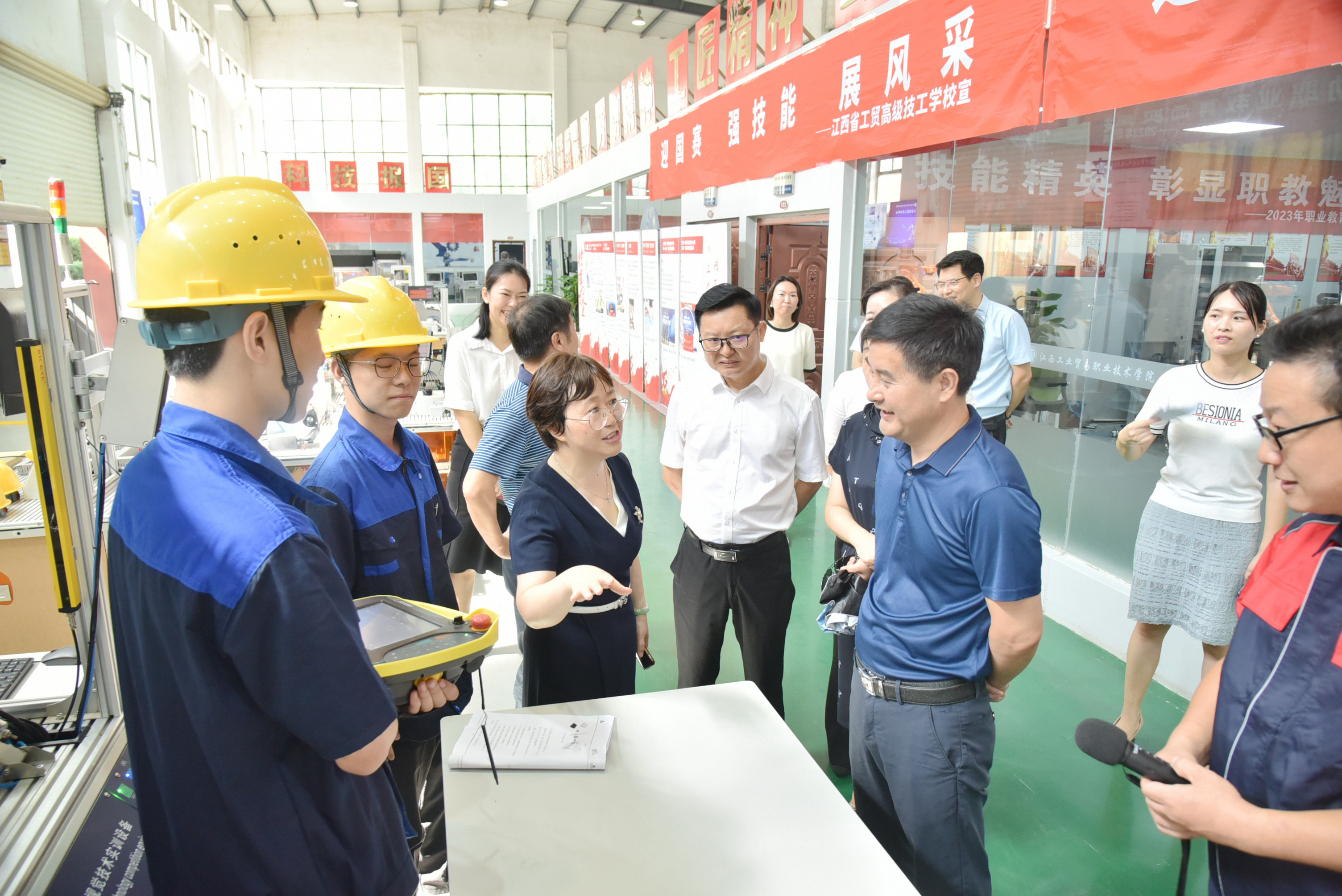 7月13日上午,学校在南门广场开展2023年技能雏鹰杯“迎国赛走技能成才之路”暨7·15世界青年技能日活动。江西省就业创业服务中心主任郭锦亮,副主任陈学军、徐云飞,技工教育研究处处长胡强、竞赛组织处负责人钟阳萍、技工教育研究处干部王瑜一行六人来校指导并出席活动。学校党委副书记彭锐、副校长胡晖及相关职能部门、系部负责同志陪同,共计100余人参与活动。