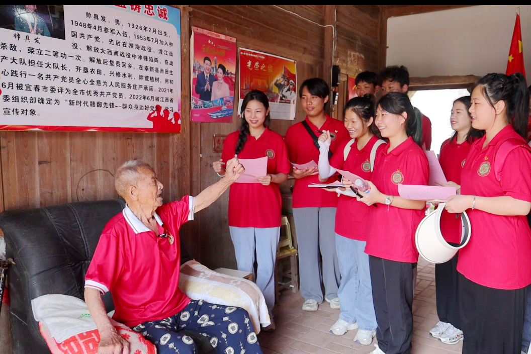 学院团委“茂茂”志愿服务队来到奉新县赤田镇老党员帅具发的家中,听他讲述当年的革命故事。1948年4月参军入伍后,他经历了淮海战役、渡江战役、解放大西南战役,解放后复员回乡,带领大家开垦农田、兴修水利、除荒植树,用实际行动践行了一名共产党员的初心使命,更为团员青年们上了一堂生动的爱国教育课。