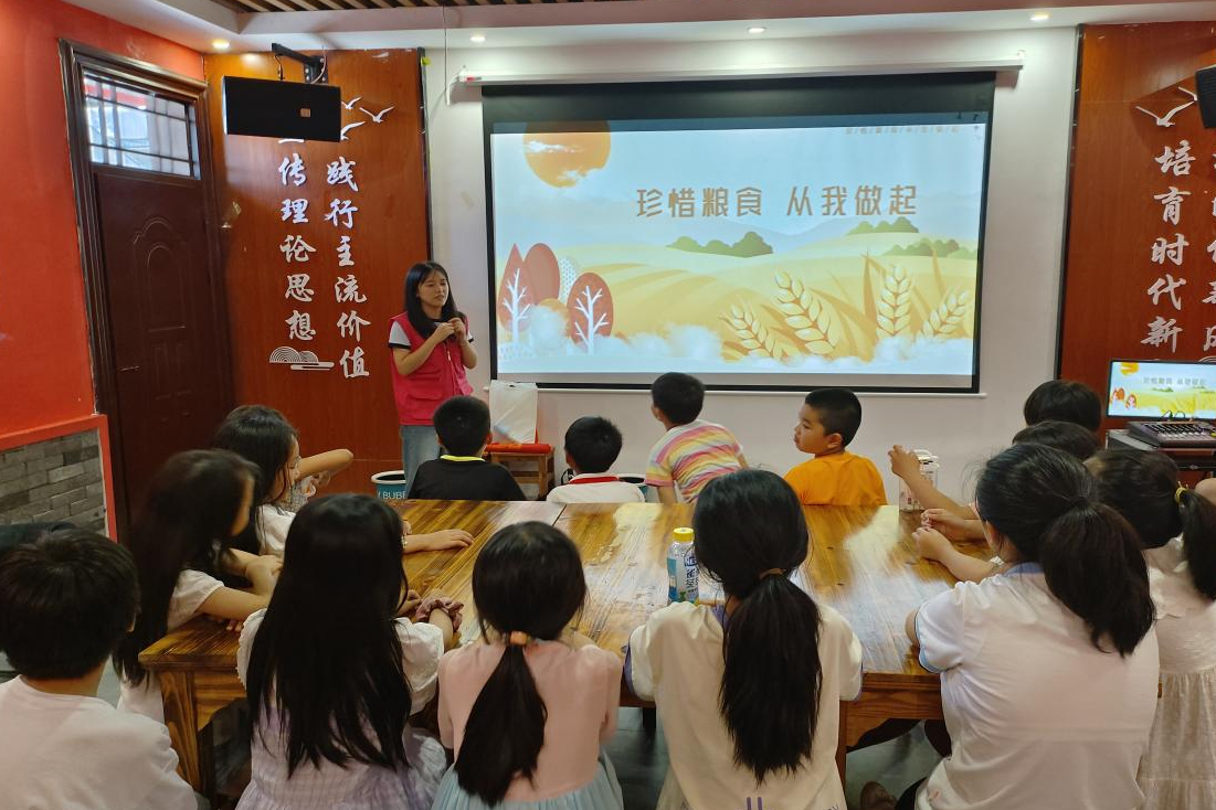学院旅游商务系“童稚”志愿服务队前往德兴市银城街道、万年县裴梅镇,将学院五粮文化育人理念融入教育实践,为孩子们带来“珍惜粮食、从我做起”的主题爱心公益课堂,运用粮食图片来帮助孩子们认识农作物,引导孩子们弘扬爱粮节粮美德,争做节约粮食的传播者、实践者和示范者。