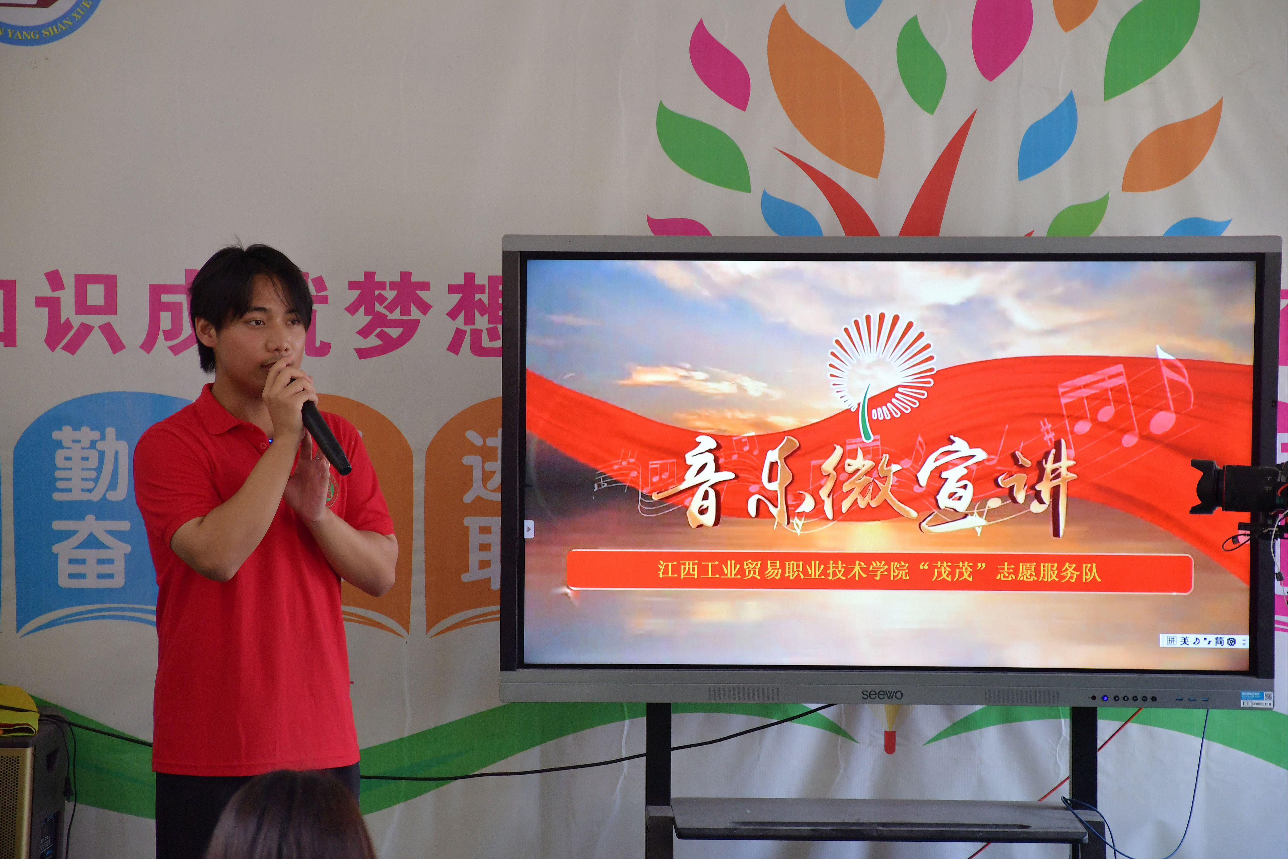 为深入学习宣传贯彻党的二十大精神,将党的创新理论飞入寻常百姓家,学院团委“茂茂”志愿服务队在奉新县仰山乡以“理论知识+音乐微宣讲”的形式,营造学习宣传贯彻党的二十大精神的浓厚氛围,让党的二十大精神家喻户晓、深入人心。根据不同参与对象,“茂茂”志愿服务队制定了不同的课程内容,面向中老年人,志愿服务队成员通过讲述党的二十大主要内容,引导广大群众深刻体会中国共产党为什么能、马克思主义为什么行、中国特色社会主义为什么行。同时还通过歌唱《党旗飘扬的方向》,用动听的歌声传递对党的敬仰,赢得在场群众的阵阵掌声;面向小学生,志愿服务队通过对党的理论知识和革命先烈的历史事迹宣讲和“合唱+手势舞”的形式完成《我和我的祖国》,引导孩子们表达出对祖国的无限热爱。