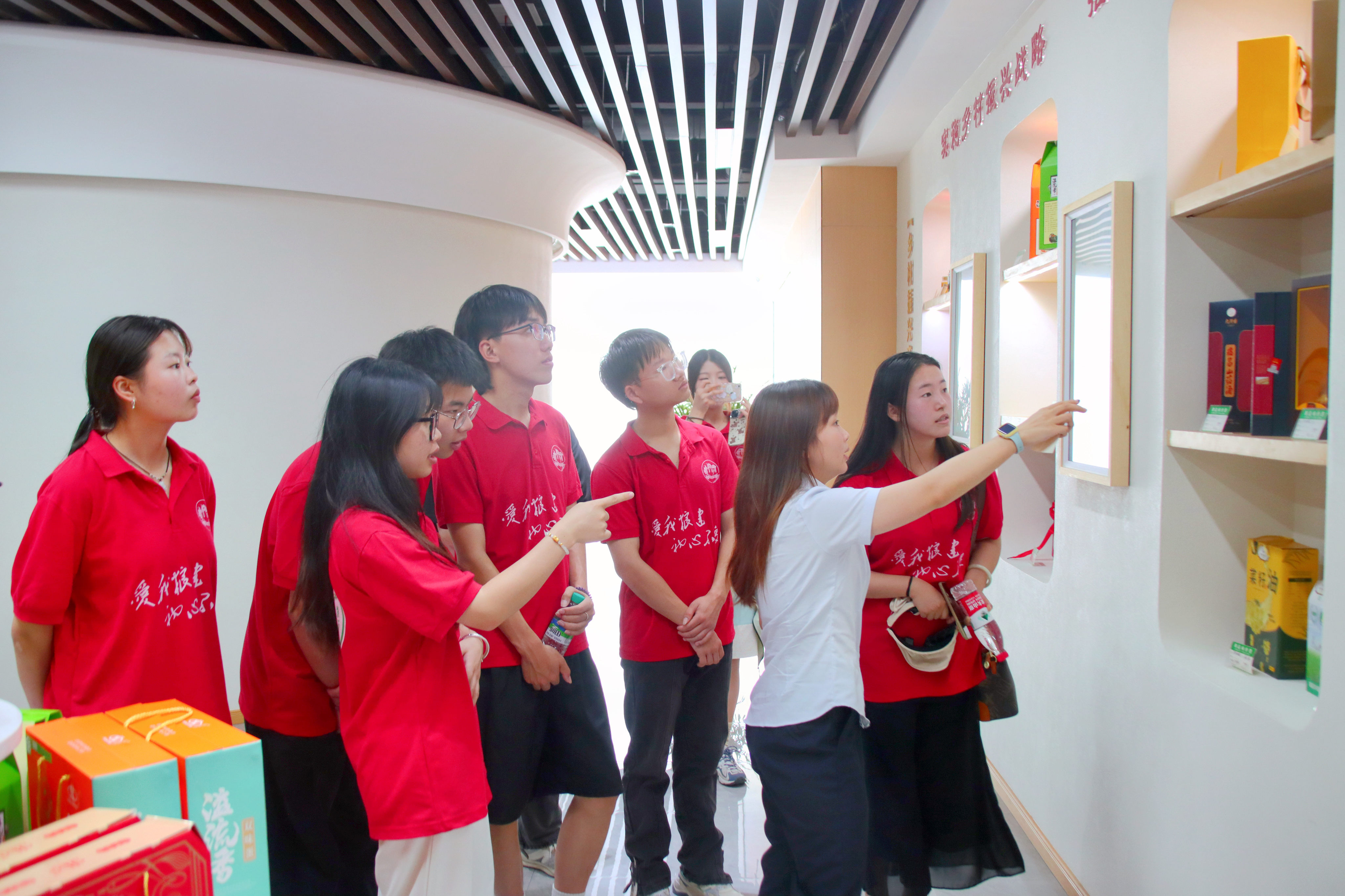 学院粮油建艺系“青年粮站”志愿服务队来到瑞昌市码头镇梁公村开展社会实践活动,在梁公村乡村振兴产品展销馆进行实地调研,了解码头镇在深入实施乡村振兴战略的“升级”之作,在调研过程中发现码头镇以“共抓大保护、不搞大开发”为导向,牢固树立“生态优先、绿色发展”理念,大力推进生态文明建设,建设美好家园,同学们也近距离感受新农村建设和乡村振兴的最新成果。