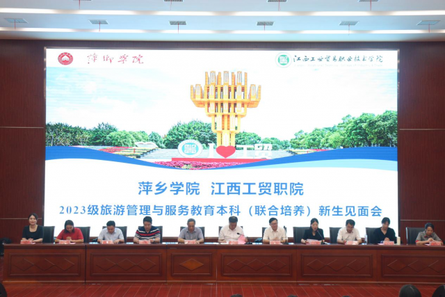 2023年9月27日下午,萍乡学院与江西工业贸易职业技术学院2023级旅游管理与服务教育本科(联合培养)新生见面会在江西工业贸易职业技术学院图书馆学术报告厅隆重举行。