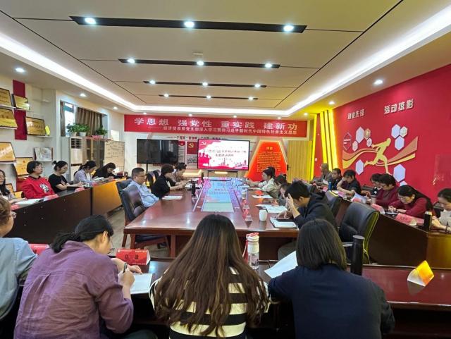 议的第二个环节:彭晔同志传达学习《习近平主持召开进一步推动长江经济带高质量发展座谈会强调进一步推动长江经济带高质量发展更好支撑和服务中国式现代化》,随后,分别由何静、范东辉、周芳、肖婉宜传达学习《习近平在二十届中共中央政治局第八次集体学习并发表的重要讲话精神》《求是》发表的习近平的重要文章《推进中国式现代化需要处理若干重大关系》和《开辟马克思主义中国化时代化新境界》《习近平致全国优秀教师代表的信》等学习内容。