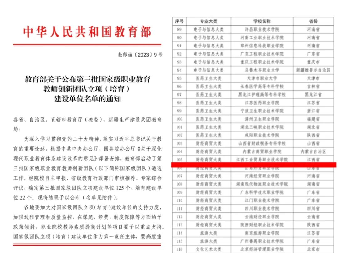学院入选第三批国家级职业教育教师创新团队立项(培育)建设单位
