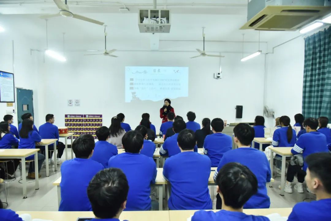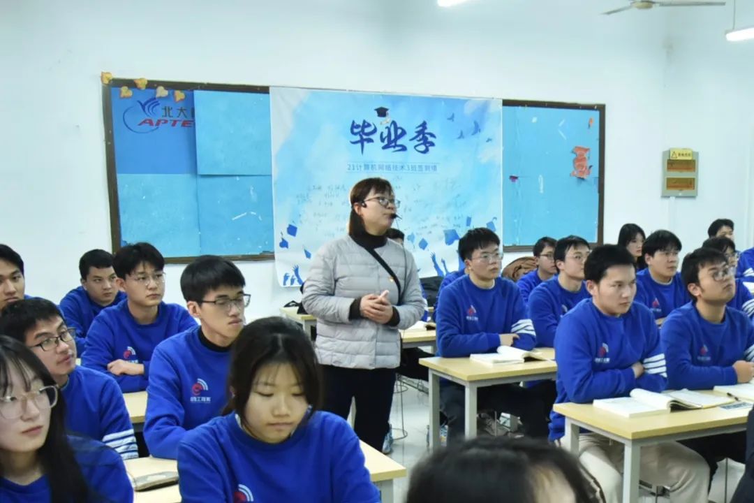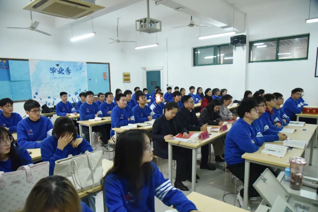 随后,彭锐在思泽楼306教室和同学们一起聆听了熊婷老师以《牢记嘱托担使命,感恩奋进谱新篇——深入学习习近平总书记考察江西重要讲话精神》为主题的班会。主题班会分3个环节进行:一是学习宣传贯彻习近平总书记考察江西重要讲话精神;二是做好职业生涯规划,助力长江经济带发展;三是争做“最美工贸人”,感恩奋进,勇谱新篇。主题班会形式多样,“击鼓传花”竞答、职业生涯规划分享、学期本科阶段的学习与生活分享、爱我工贸集体宣誓等,最后班会在全体同学齐唱班歌《平凡之路》的激情澎湃歌声中结束。