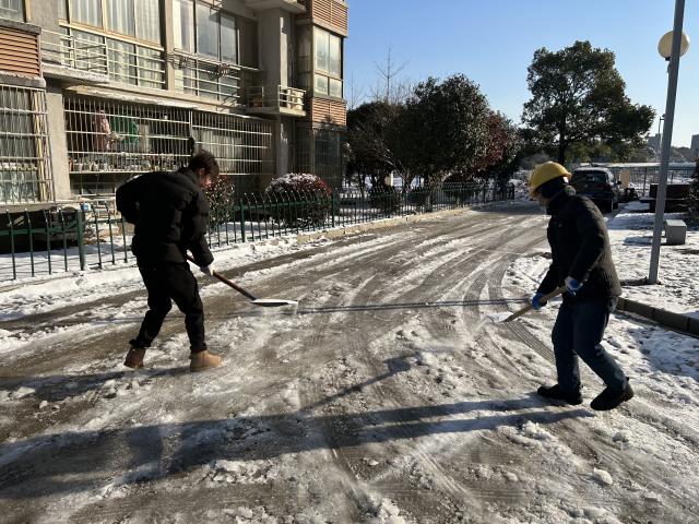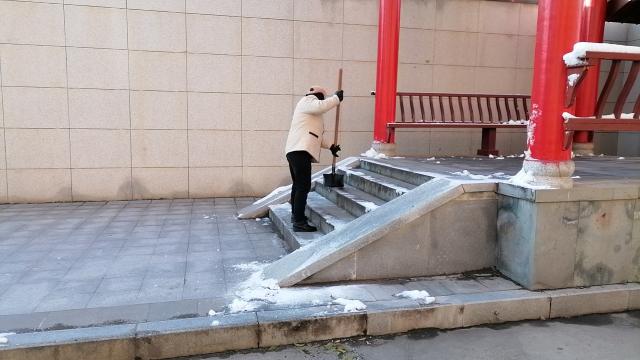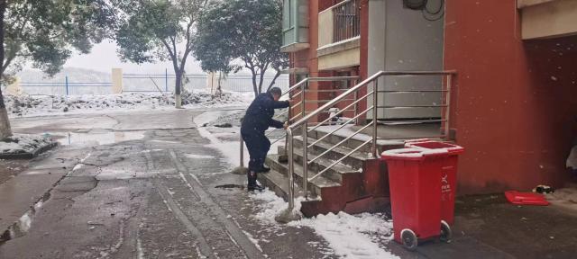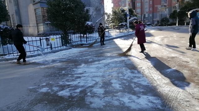 “晨起开门雪满山,雪晴云淡日光寒。”1月22日一早,后勤服务中心全体人员集体出动,中心工作人员、物业人员、绿化人员紧密配合,连续作战,及时清理积雪,铺洒工业盐,对易结冰区域进行重点防护,采取多种措施进行除雪除冰。