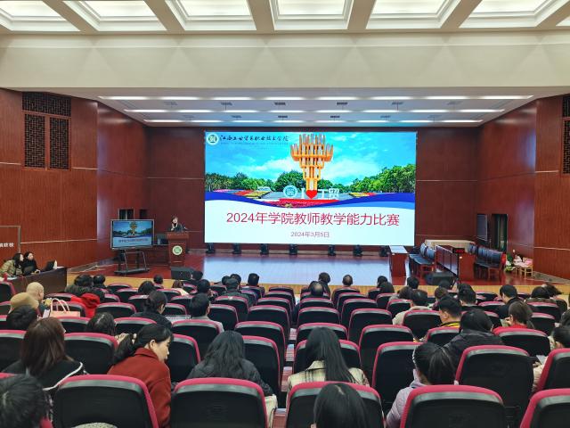 3月5日下午,学院在图书馆学术报告厅举办2024年教师教学能力比赛,经系部选拔,共有8支教师团队进入现场决赛。学院党委委员、副院长胡晖出席,学院学术委员和历年国赛参赛教师担任评委,各系部主任、分管教学副主任及部分教师观摩比赛。