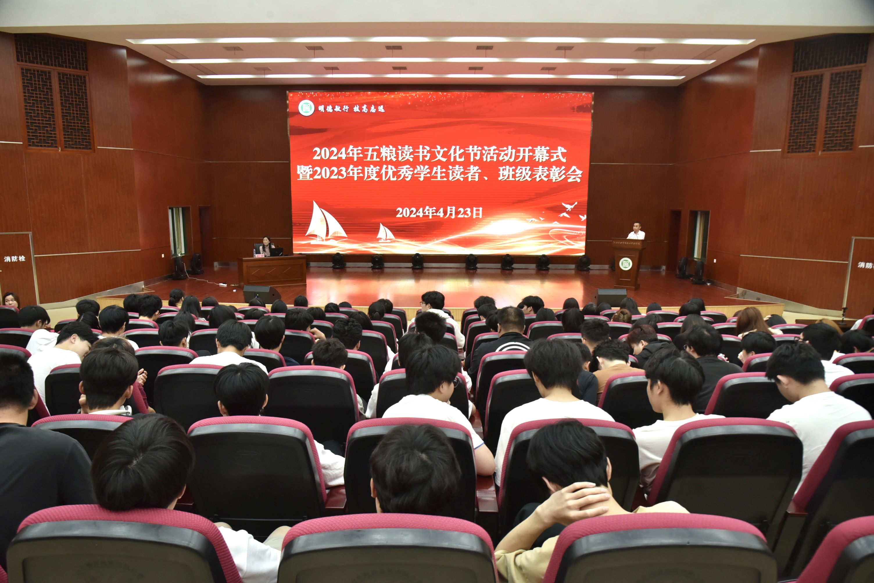 春风拂卷书香浓,全民阅读热潮涌。为深入学习贯彻习近平文化思想,践行社会主义核心价值观,4月23日,在第29个世界读书日之际,学院图书馆在学术报告厅举办2024年五粮读书文化节活动开幕式暨2023年度优秀学生读者、班级表彰会。学院党委副书记彭锐出席并致辞,开幕式由院长助理王佳主持,各系部、师生代表400余人参会。
