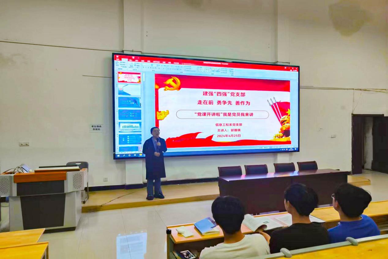 党的二十大报告指出:“强化就业优先战略,促进高质量充分就业”。为深入学习贯彻党的二十大精神,巩固学习贯彻习近平新时代中国特色社会主义思想主题教育成果,切实提升思政育人工作的实效,引导学生树立正确的就业观、择业观,培养担当民族复兴大任的高素质人才。4月25日晚7:00,信息工程系党支部专职辅导员郭雅琪在志学楼214开展“建强‘四强’党支部暨‘党课开讲啦’我是党员我来讲”主题宣讲,此次党课的主题是《当前就业形势与实施就业优先战略》,信息工程系23物联网工程本科1班、23物联网工程本科2班、23物联网工程本科3班和23物联网工程本科4班全体学生参加此次党课学习。