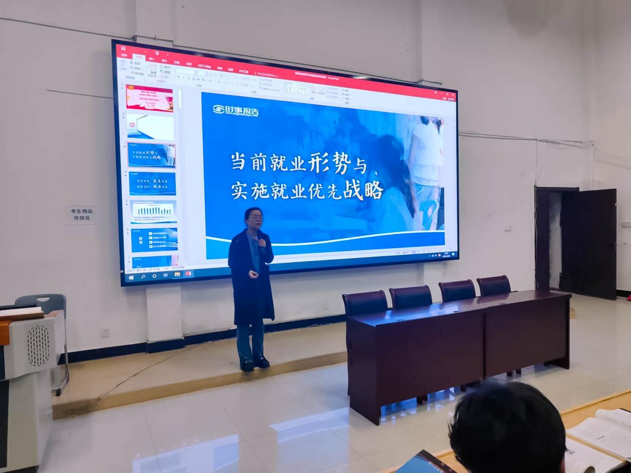 再次,郭雅琪根据大学生面临的就业压力,讲到国家实施的就业优先战略有效地缓解了就业结构性压力,促进了高质量充分就业,帮助大家树立就业信心。最后,阐述我国支持高校毕业生就业的政策措施,让学生明白党和国家切实把促进高校毕业生就业摆在突出位置,细化实化政策措施,并且在拓宽空间、促进对接、帮困助困等方面做了大量工作。最后提出,大家在面对就业时,应当树立正确的就业观、择业观,从实际出发,做好职业规划。
