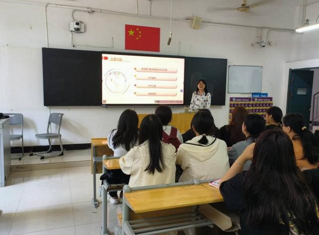 为提高培训效果,邓新红老师还特意邀请了上学期大学生职业规划大赛校赛成长赛道第二名获得者杨彬做了PPT汇报的分享,并同步邀请了2023年供应链管理大赛主要选手危璐康做PPT答辩环节的分享。