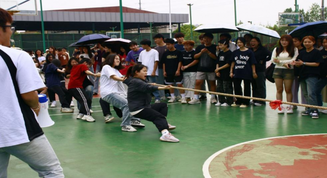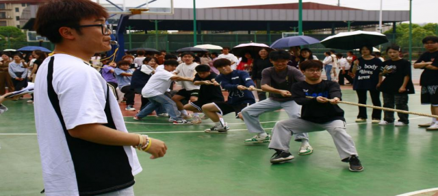 为丰富学生们的课余文化生活,增进学生之间的交流,增强学生的凝聚力,培养学生的团队合作能力,拔河比赛在校园内热烈开场,经过两周休整,旅游商务系于5月7日中午12:40在篮球场开展拔河比赛半决赛,同学们个个精神饱满,斗志昂扬,充分体现了青年的朝气,一场如火如荼的拔河比赛半决赛正式开始。