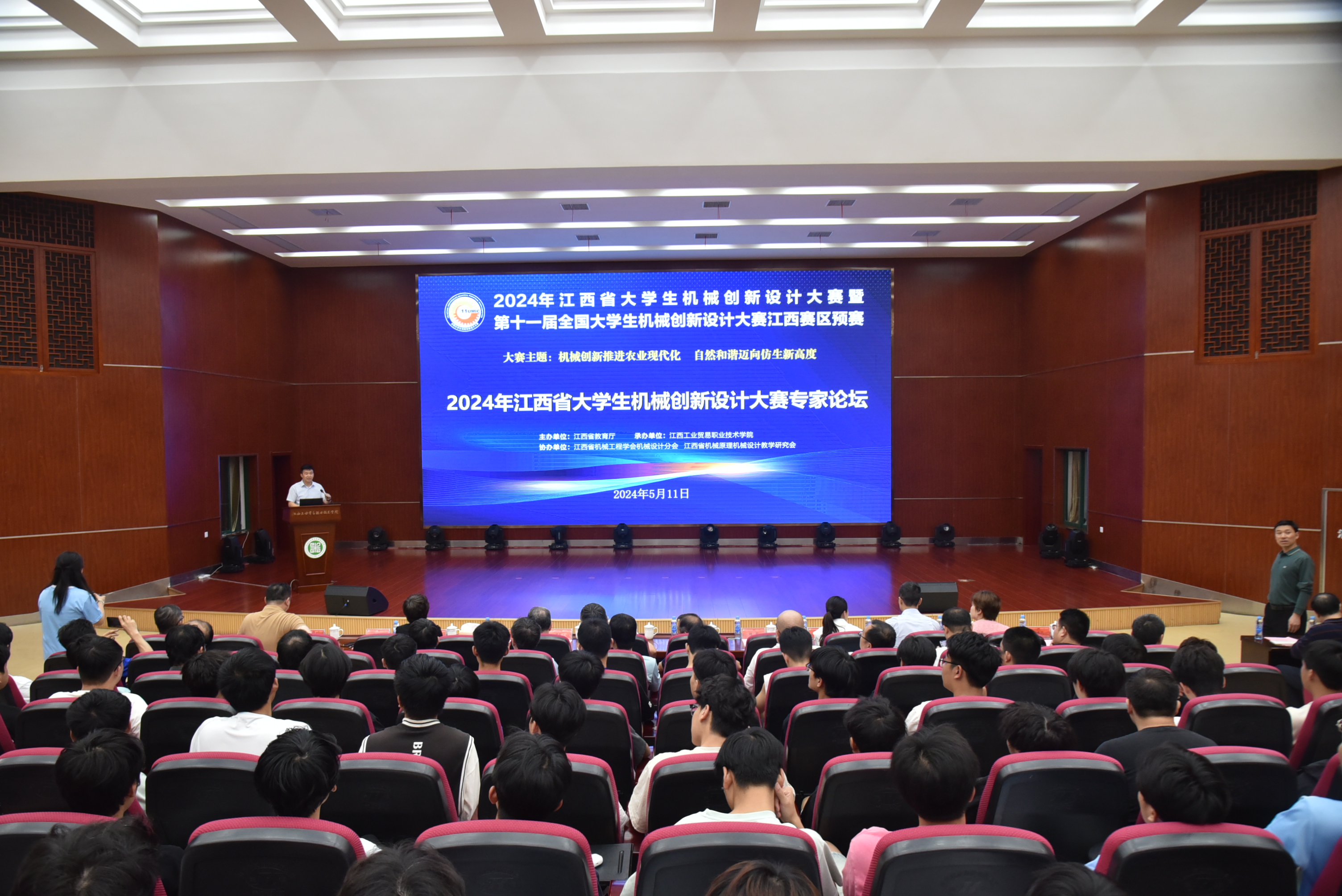 5月11日,江西省大学生机械创新设计大赛专家论坛在江西工业贸易职业技术学院举行,来自全国各地的专家学者和青年才俊相聚一堂,共同探讨机械创新设计的未来,全面提高创新人才培养质量。论坛由九江学院教务处处长、机械学院院长黄强教授主持。