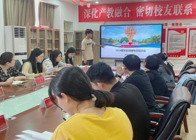 本次毕业班辅导员培训会一是传达《江西省教育厅工作提示2024年(第五号)》文件精神;二是传达学习《关于开展2024届全省高校就业监测工作的通知》文件精神; 三是再次系统培训《全国高校毕业生去向登记系统操作指南》; 四是各专本科辅导员就当前在指导学生完成毕业去向登记工作的常见问题开展交流。