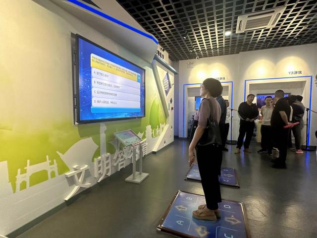 南昌市廉文化馆位于赣江之滨,由“一园、一馆、一带”构成,主要涵盖了中华廉文化优秀思想、人文雕塑、历史典故以及江西南昌本土廉文化人物事迹等各类图文展品。在馆内智能语音、虚拟现实等科技辅助下,大家沉浸式参观了“廉洁三字经”“党纪法规”“一封家书”“百家论廉”“莲心廉语”等一系列主题展厅,全方位感受“廉”文化的熏陶;在“文明答答看”互动展厅,支部书记和大家一起进行廉政知识竞赛答题,充分激发起大家学纪的热情。