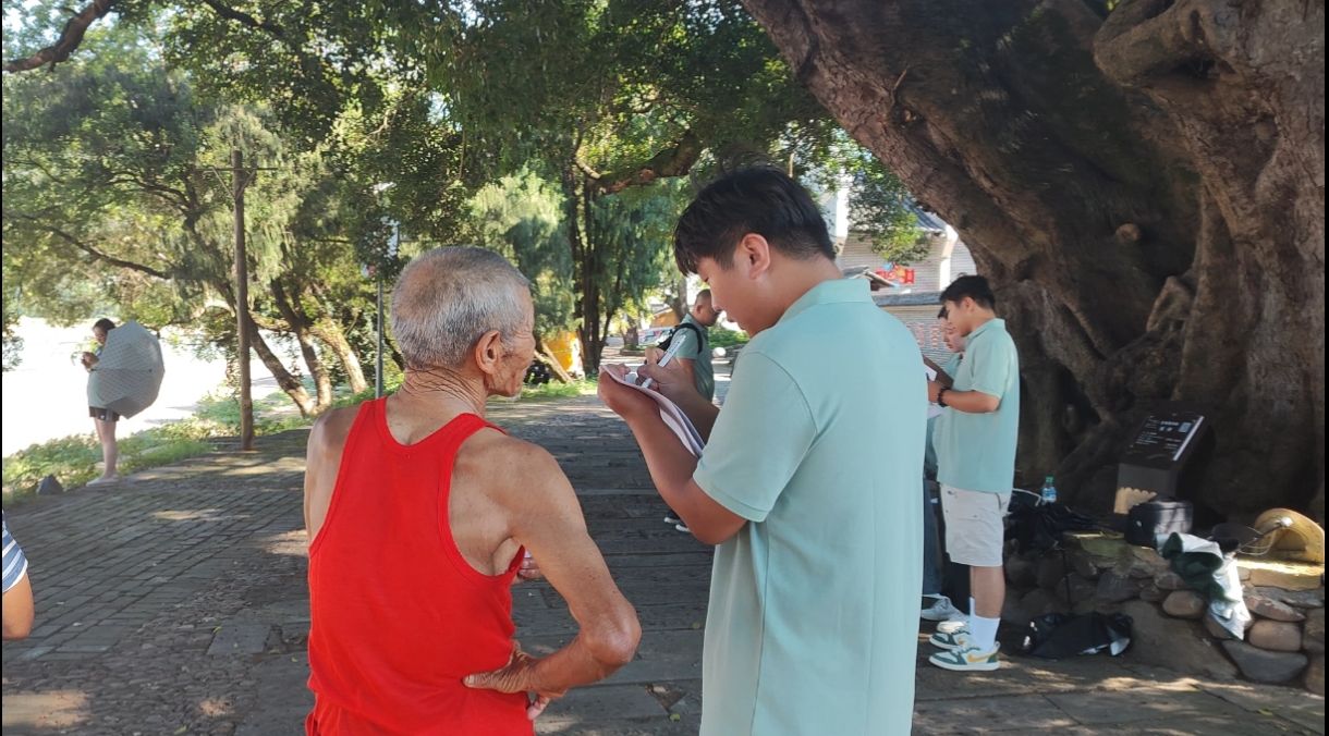 7月3日,见微实践队来到于都县段屋乡寒信村,聆听非遗特色文化活动——唱古文,在聆听中感受到非遗传承人的坚守,在百年榕树下,队员们手握柚子棒,细磨材料,尝一口擂茶,真切感受到了客家人的热情与真诚,领略到了客家文化的独特魅力。