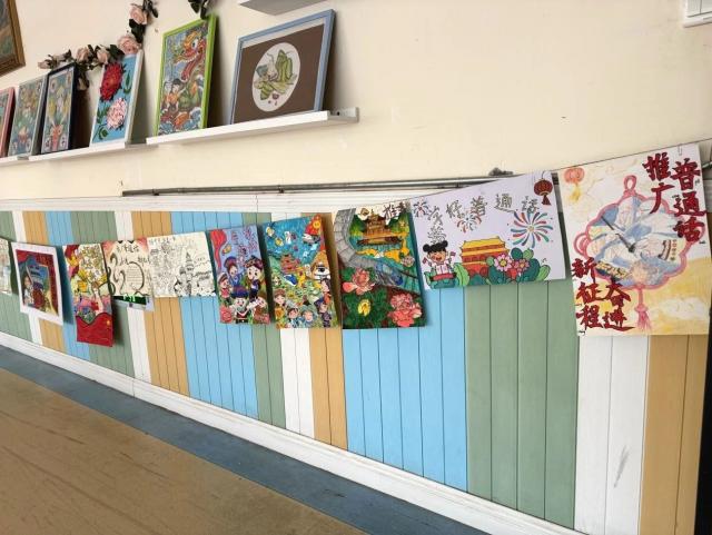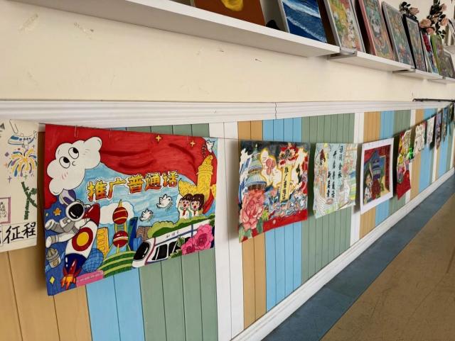 随后,同学们在老师的组织下,将作品展示在芳泽楼,不仅在全系范围内营造浓厚的推普氛围,更充分展现了旅游商务系学子们良好的团队精神和艺术欣赏能力。