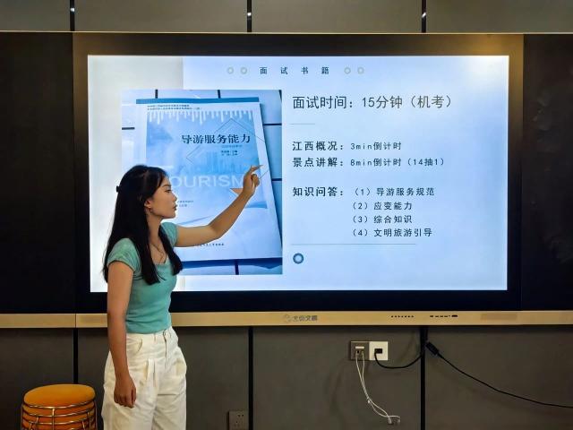 孙繁雪学姐从为什么要考导游证这一点入手,分析了导游证对于我们专业未来就业和个人学习需求都有很大的帮助。她强调了心态调整、时间管理及持续学习的重要性,并鼓励学弟学妹们:“导游资格证不仅是敲门砖,更是个人专业素养的体现,持之以恒,必有所成”,提醒同学们在面试中要注重对礼仪、细节的把控,面试过程中全程保持微笑。
