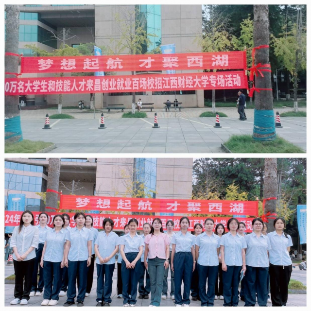 职在金秋季,就业正当时,为深入学习贯彻党的二十届三中全会精神,促进大学生就业,向企业输送优秀人才,满足毕业生求职者的就业需求,了解招聘信息,打通大学生就业顶岗实习通道,2024年10月18日上午8:00,旅游商务系刘萍老师带领2022级商务英语3班22名学生参加江西财经大学(蛟桥校区)举行的“国聘行动2024”江西省2025届高校毕业生校园招聘会,本次招聘会秉着为求职者“送岗位、帮就业、促发展”的初心,拓展更多的就业服务渠道,招聘会现场设置了政策咨询服务台、企业介绍、企业宣讲等,通过现场宣讲,发放宣讲资料等方式,为毕业生积累更多的经验,夯实面试基础。