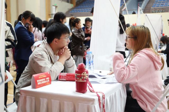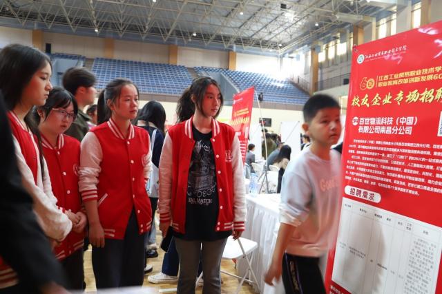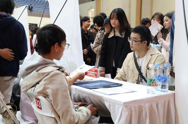 此次招聘会我系11家校友企业收到406份简历并开展的专场宣讲。招聘会现场人头攒动,毕业生们求职热情高涨,经贸系副主任范东辉、胡越君分别与参会的校友企业“面对面”互动。我系2025届毕业生们针对企业招聘岗位咨询了解岗位招录条件、福利待遇等问题。