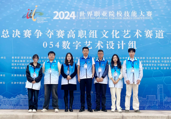 10月31日-11月1日,由教育部及35家部委单位主办的2024年世界职业院校技能大赛总决赛争夺赛文化艺术赛道“数字艺术设计”赛项在天津中德应用技术大学举办。建筑与艺术设计系领队李尊华,指导老师汤玉玲、李培官,学生黄豪、钟雪梅、程有广、熊阿玲组成的参赛代表队,从全国30个省、自治区、直辖市共62支参赛队伍中奋勇拼搏,斩获银奖。