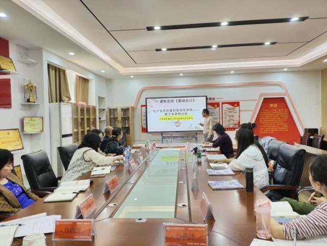 为落实立德树人根本任务,构建三全育人大格局,强化专业课思政德育功能,11月12日下午,经济贸易系财会教研室在袁慧老师组织下,开展《基础会计》课程思政教学研讨会。江西管理职业学院教务处王安娜处长、经济贸易系分管教学负责人胡越君参与了本次研讨活动。