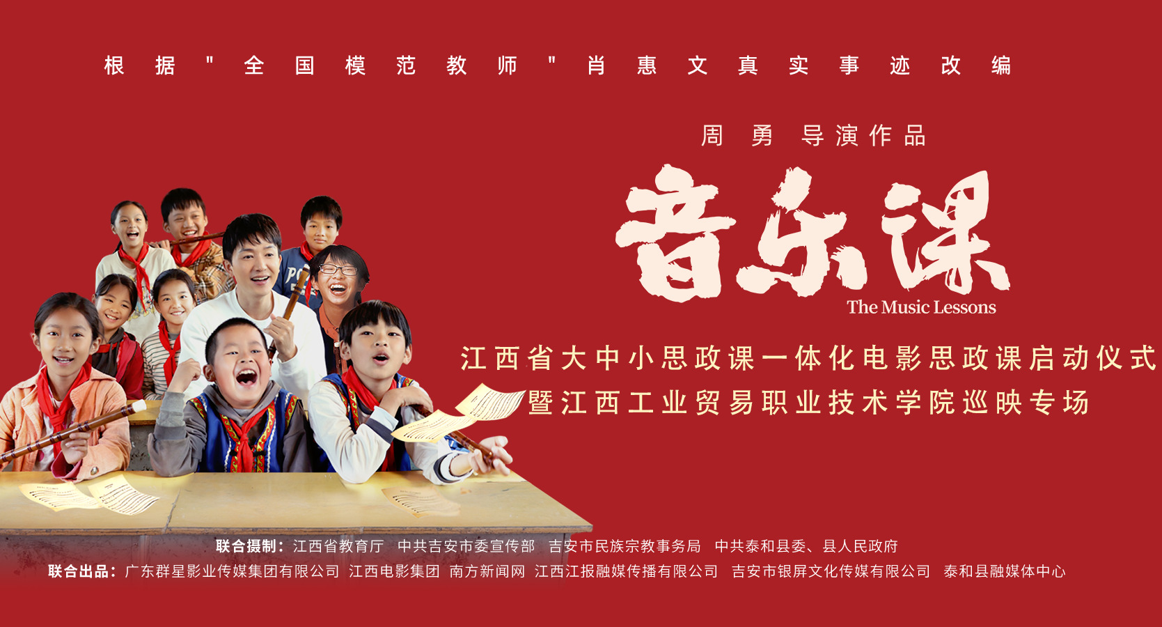 据悉,江西工业贸易职业技术学院于12月23日至12月27日轮播6场《音乐课》电影,预计3000余名师生观看。电影故事片《音乐课》是由江西省教育厅、中共吉安市委宣传部、广东群星影业传媒集团等单位联合摄制,影片取材于“全国模范教师”“江西好人榜”“江西青年五四奖章”获得者肖惠文真人真事,是一部感人至深且富有教育意义的优秀影片。