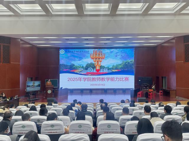 为全面提升教师的师德践行能力、专业教学能力、综合育人能力和自主发展能力,3月18日,学院在图书馆学术报告厅举办了2025年教师教学能力比赛。经系部选拔,共有9支教师团队进入现场决赛,学院党委委员、副院长胡晖出席,各系部负责人、学术委员、历年教学能力比赛国赛获奖教师担任评委,各系骨干教师观摩比赛。