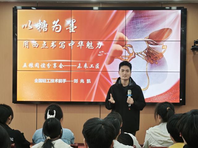 2025年4月3日中午,学院图书馆举办了“五粮阅读分享会”第十一期未来工匠活动。本期的主题是“以糖为墨,用西点彰显中华文化魅力”。
