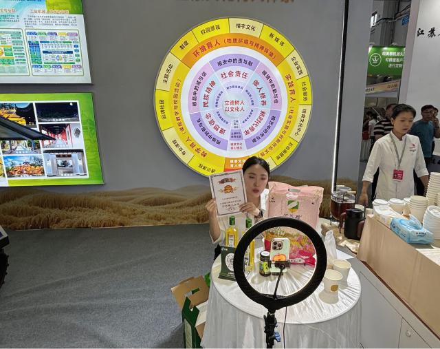本届大会以 “粮安天下聚合力、产销融通促发展” 为主题,吸引了来自全国多家企业及行业人员参展参会。学院展区吸引了全国粮食行业企业、高校代表驻足交流。通过实物演示、视频展示及人才供需洽谈,学院在产教融合的突出成果获得广泛认可。多家企业与学院达成合作意向,共同探索散粮运输载具升级、智能化仓储等方向的技术攻关与人才培养。顾佳雯老师在大会中充分发挥专业优势,通过直播为学院助力粮食食品行业发展贡献力量。顾佳雯老师结合市场营销和网络营销与直播电商的专业知识,向观众解读粮食产业的发展态势与市场价值,让更多人了解行业变革及学院的相关贡献。同时,她还在直播中展现学院粮食人才培养成果,让更多人了解江西本地粮食食品,助力区域经济和本土粮食产业发展。此次参会,学院以 “科技人才 兴粮兴储” 为主题展现了粮食类专业实力,顾佳雯老师的直播工作正是这一担当在专业层面的体现。