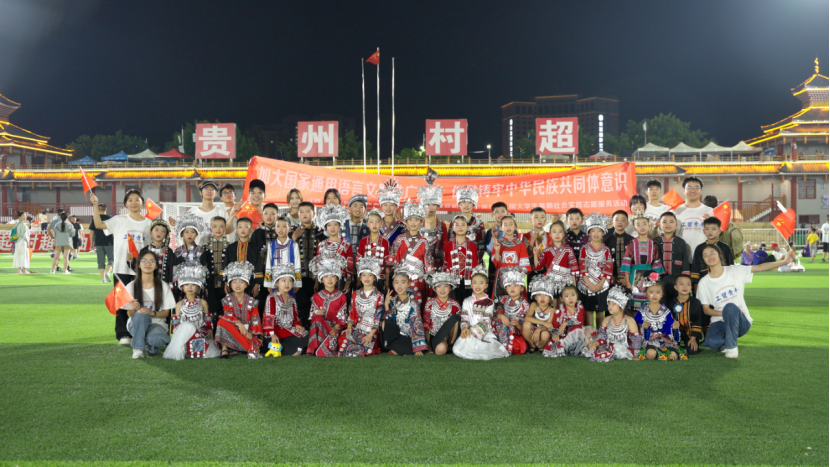 抵达当日,服务队受邀参与榕江“村超”重启“感恩之夜”活动,加入“感恩大巡游”,与少数民族群众共表谢意;压轴参演灾后重建感恩文艺演出,以多耶《民族团结一家亲》展现民族同心。队员同步发放推普宣传册,讲解意义、纠正读音、分享技巧,让推普与体育热情相融,夯实活动基础。