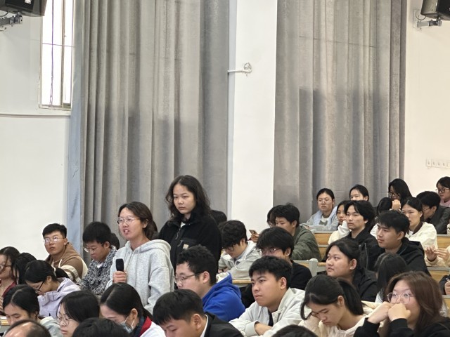 (一)即时解答,消除疑惑:对于政策解读类、流程说明类等可当场回应的问题,如食堂食材采购标准、热水供应时间调整原因等,相关负责人现场逐一细致解答,及时消除学生认知误区。比如针对新生关心的食堂食材安全问题,潘燕主任详细介绍了食材从采购、验收、储存到加工的全流程监管体系,消除了同学们对食品安全的顾虑,有效化解了认知误区。