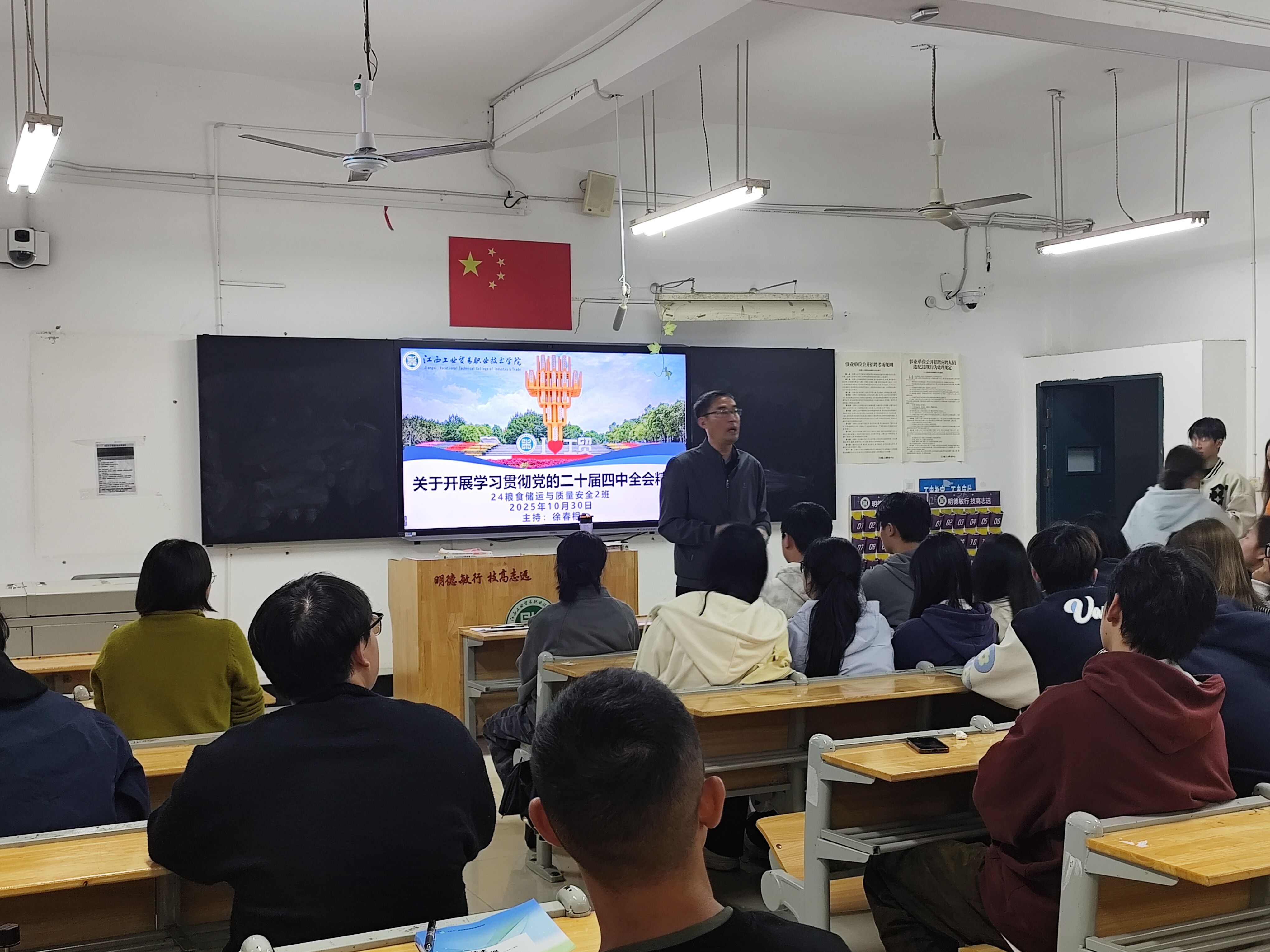 为深入学习贯彻党的二十届四中全会精神,引导青年学子将个人成长融入国家发展大局,10月29日至31日,江西工业贸易职业技术学院各班级通过主题班会、班级例会等形式,开展党的二十届四中全会精神专题学习,推动理论学习入脑入心、走深走实。