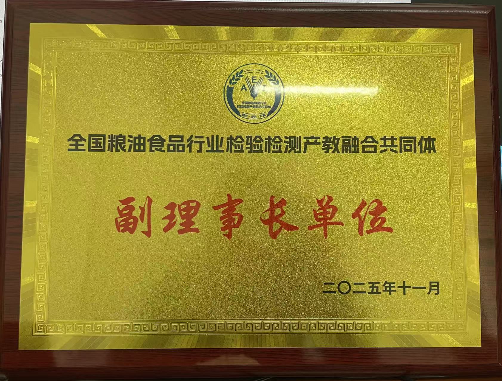 喜讯!学院当选全国粮油食品行业检验检测产教融合共同体副理事长单位