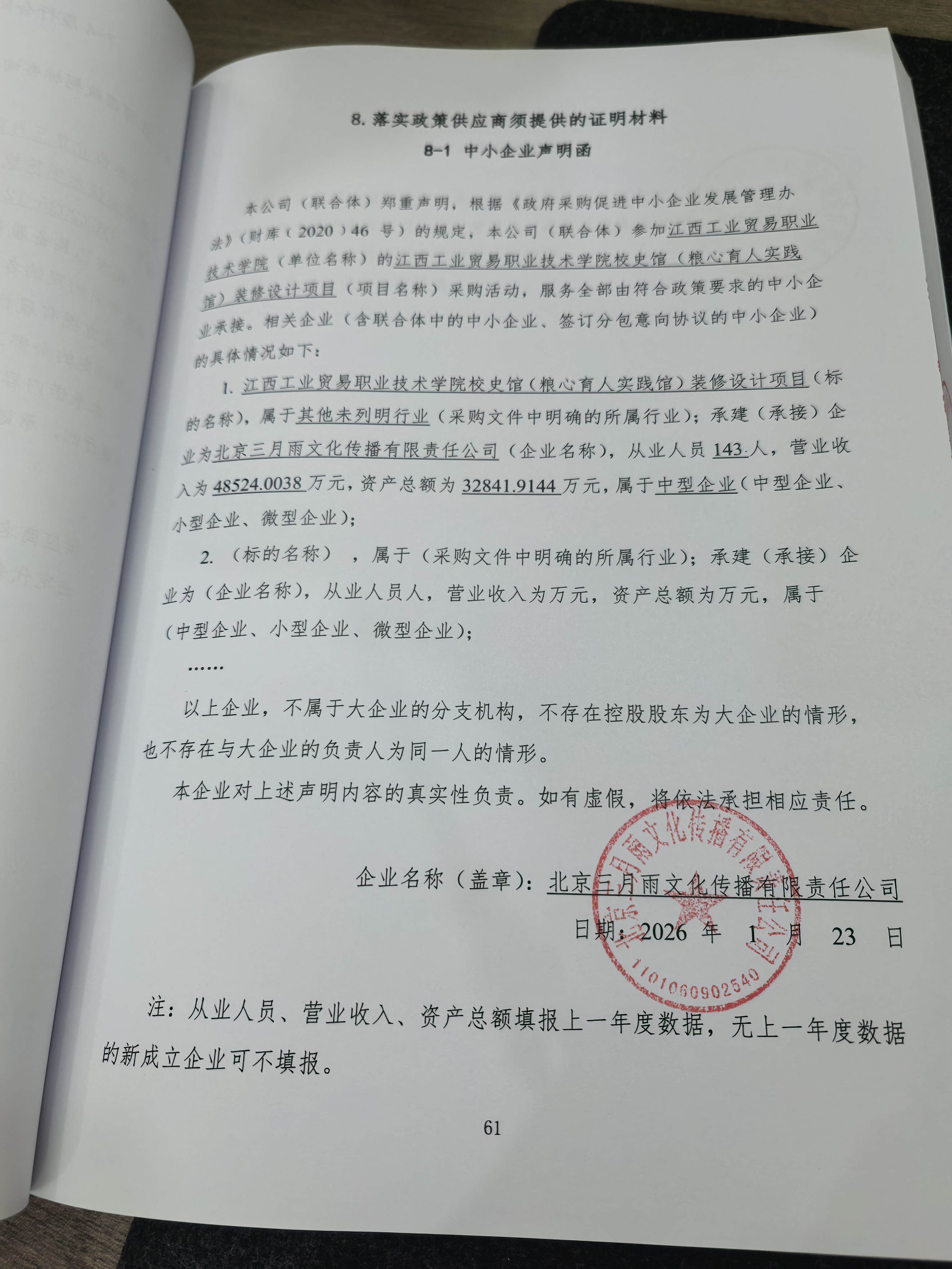 江西国政招标咨询有限公司关于江西工业贸易职业技术学院校史馆(粮心育人实践馆)装修设计项目(采购编号:JXGZ2025-12-1203-2)第三次竞争性磋商采购成交公告