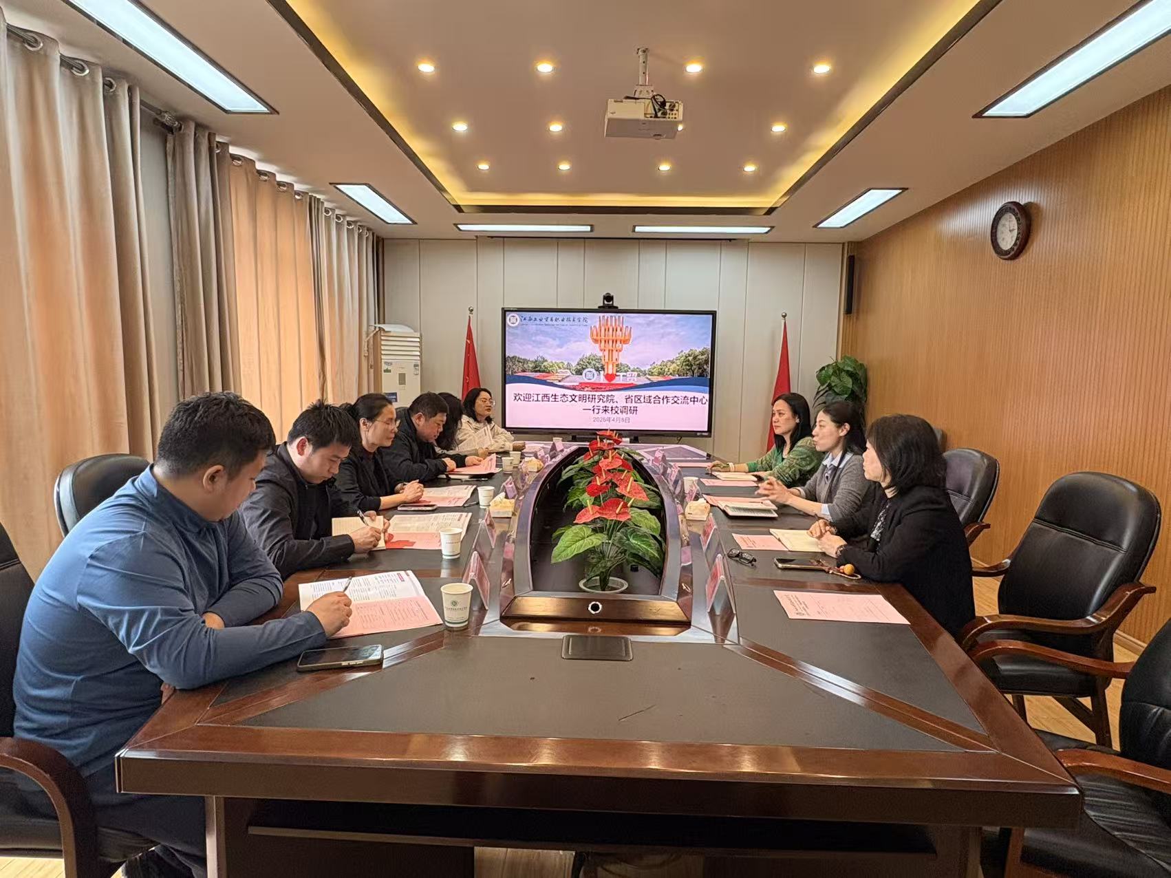 4月8日下午,江西省生态文明研究院副院长余珊,省区域合作交流中心副主任龚松一行来校调研,学校党委委员、副校长曾聪主持座谈,继续教育与培训学院相关人员参会。